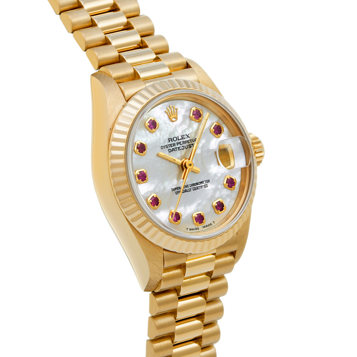 ロレックス レディ デイトジャスト 69178NGR ホワイトシェル/ルビー レディース 時計 【中古】【wristwatch】