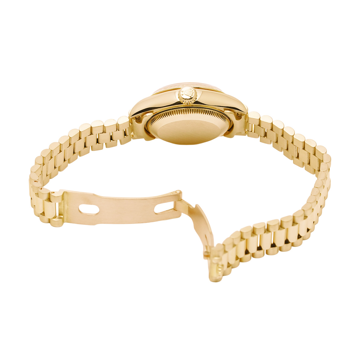 それから四半世紀の歳月を経て進化したこの世代のレディ デイトジャストの中でも、このゴールドモデルはもちろん特別な存在であり、最高峰の証であるプレジデントブレスレットがフィットされているほか、様々なジュエリーピースのベースモデルとして多く用いられています。 -