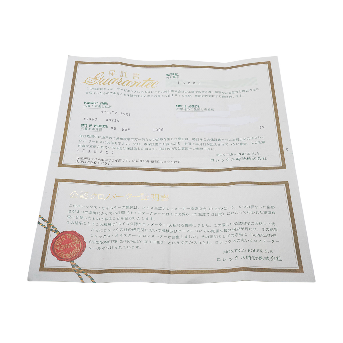 - メーカー保証書( 1996年5月国内購入) / メーカー箱(劣化)