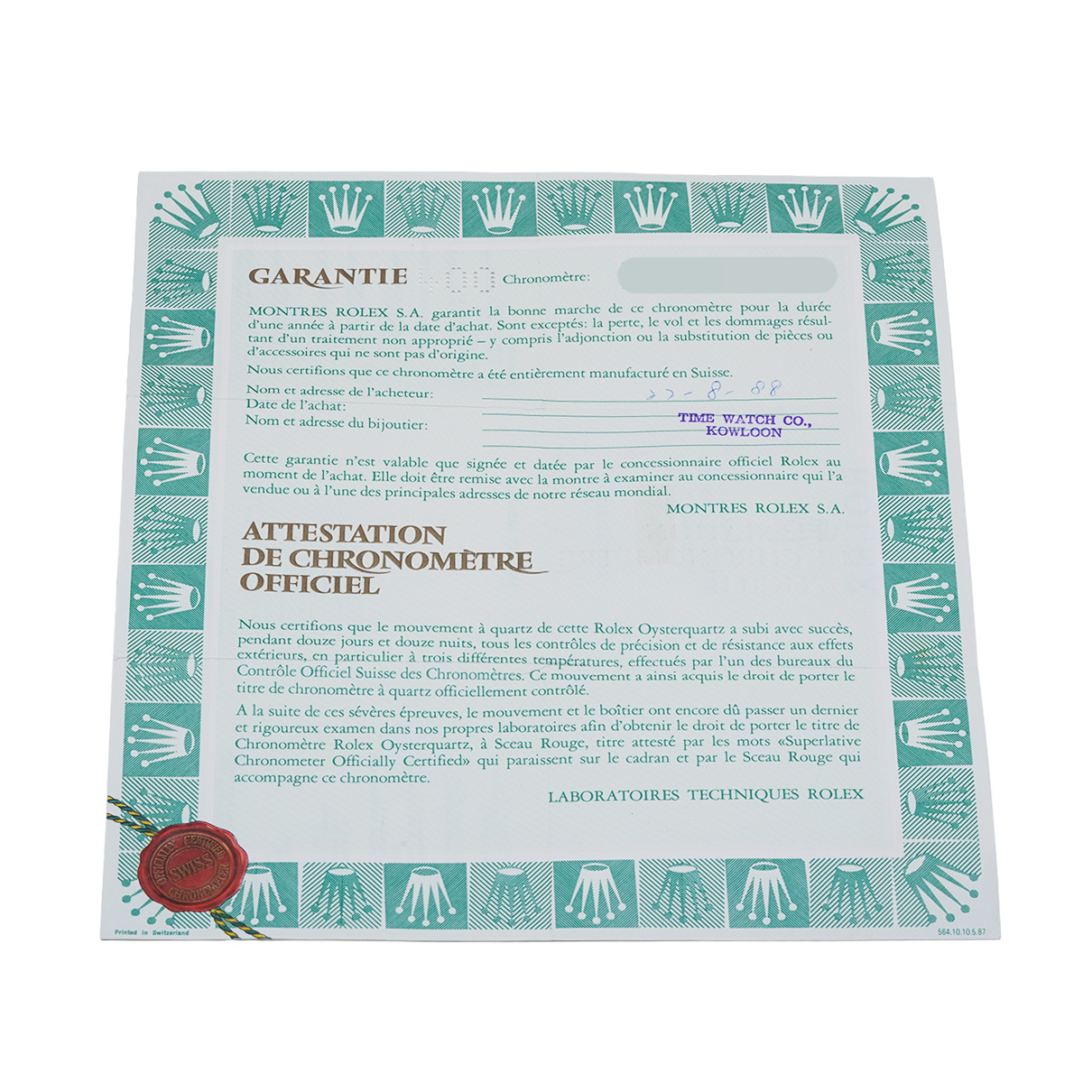 - 時計の当社保証