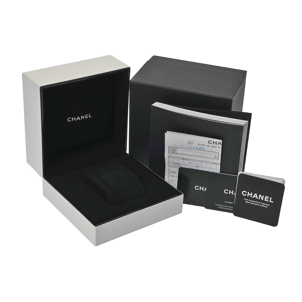 - メーカー保証書( 2019年10月国内購入) / メーカー箱/冊子/クロノメーター証明書 / 修理保証書(2021年11月メンテナンス)