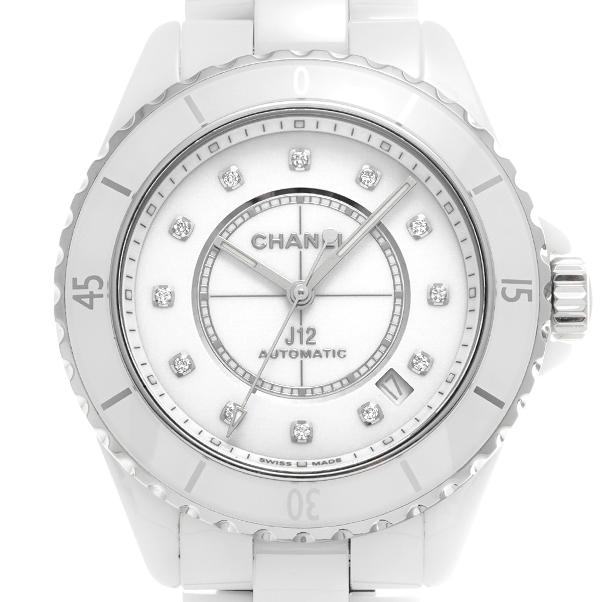 シャネル J12 キャリバー12.1 38MM H5705 ホワイトラッカー/ダイヤモンド メンズ 時計 【中古】【wristwatch】