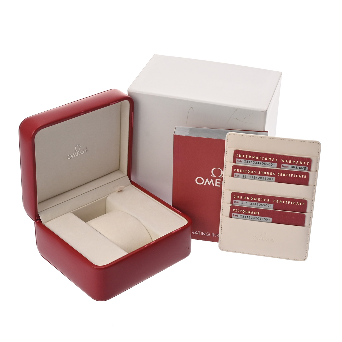 - メーカー保証書( 2012年10月国内購入) / メーカー箱(ダメージ)/冊子/ピクトグラム/クロノメーター証明書/宝石証明書