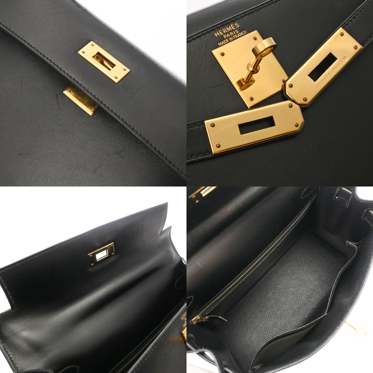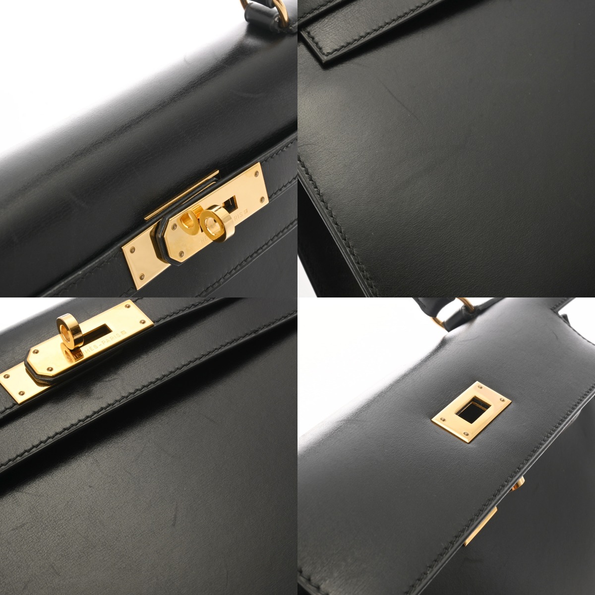 エルメス ケリー28 外縫い ブラック ボックスカーフ レディース バッグ 【中古】【bag】