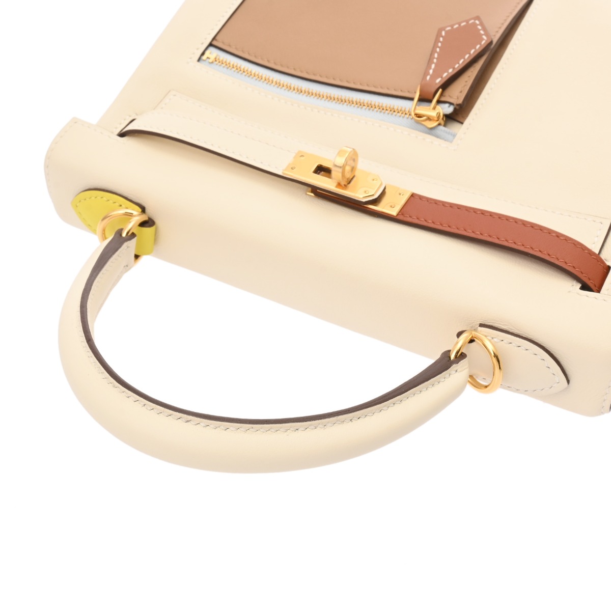エルメス ケリー 25 内縫い カラーマティック ナタ/キュイーブル/ライム/モーヴシルベストル/ブルーブリュム ヴォースイフト レディース バッグ 【中古】【bag】