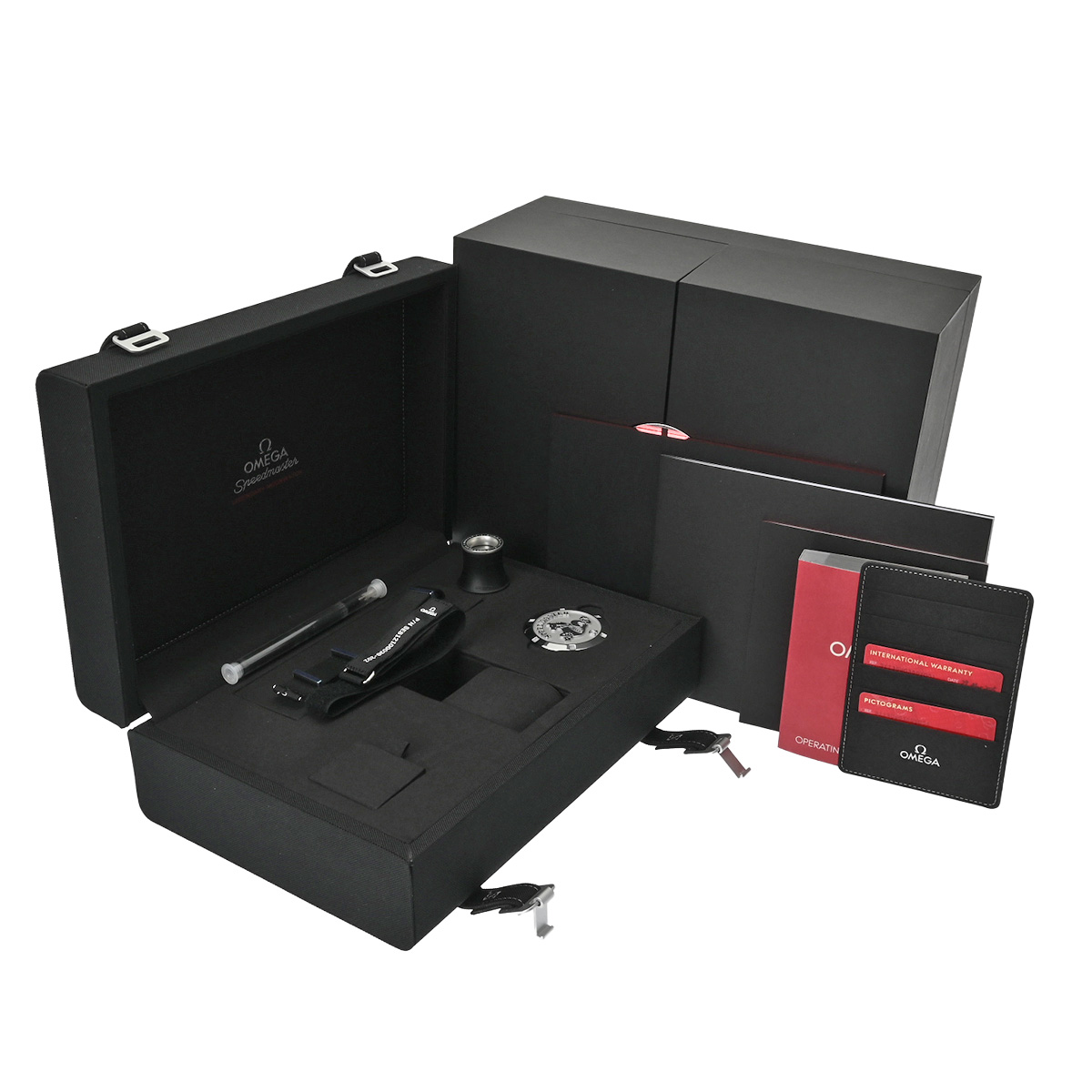 - メーカー保証書( 2025年3月国内購入) / 替えベルト( NATOタイプナイロン/ブラック、ベルクロナイロン/ブラック) / メーカー箱/冊子/ピクトグラム / ルーペ