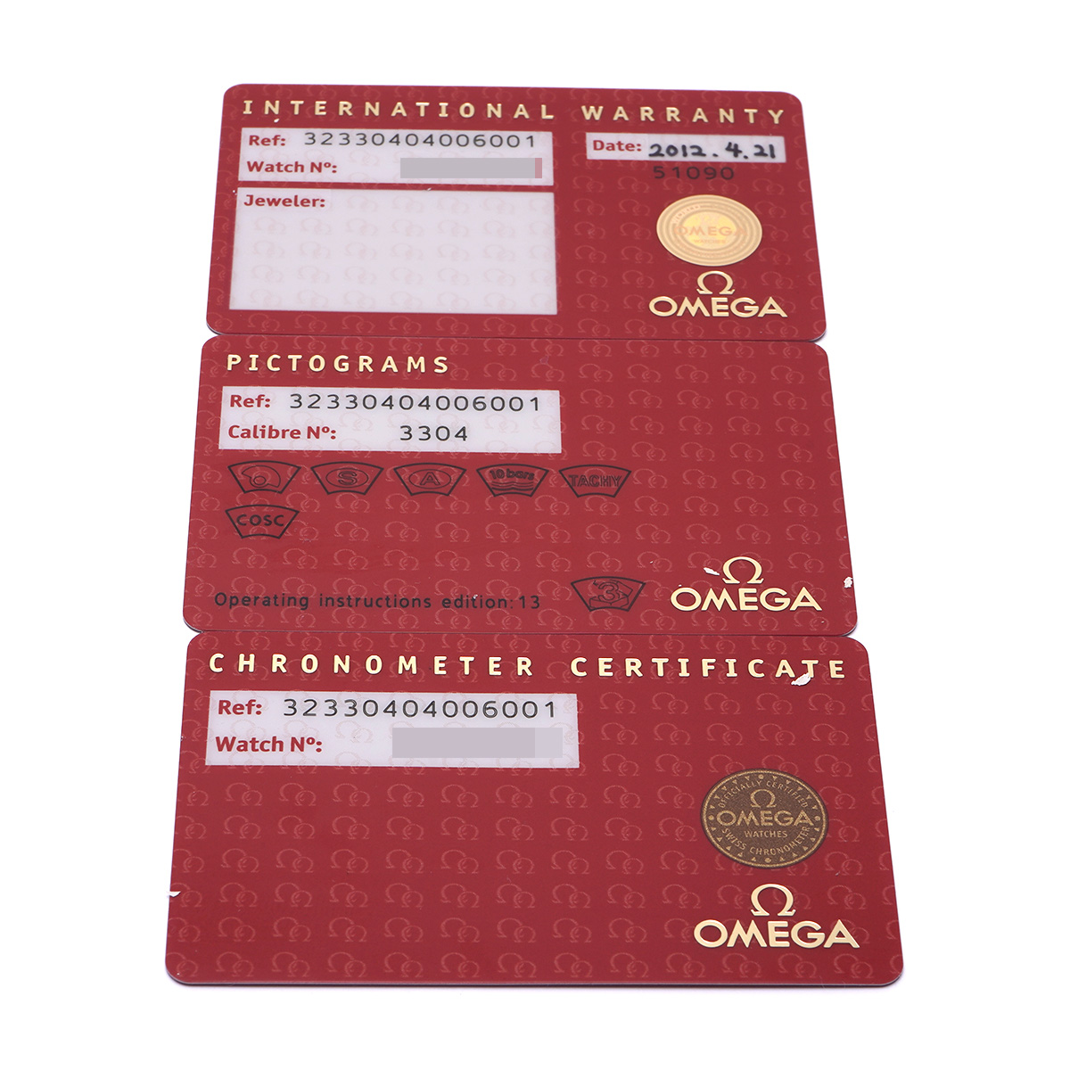 - メーカー保証書( 2012年4月購入 販売店名無記入) / ピクトグラム/クロノメーター証明書