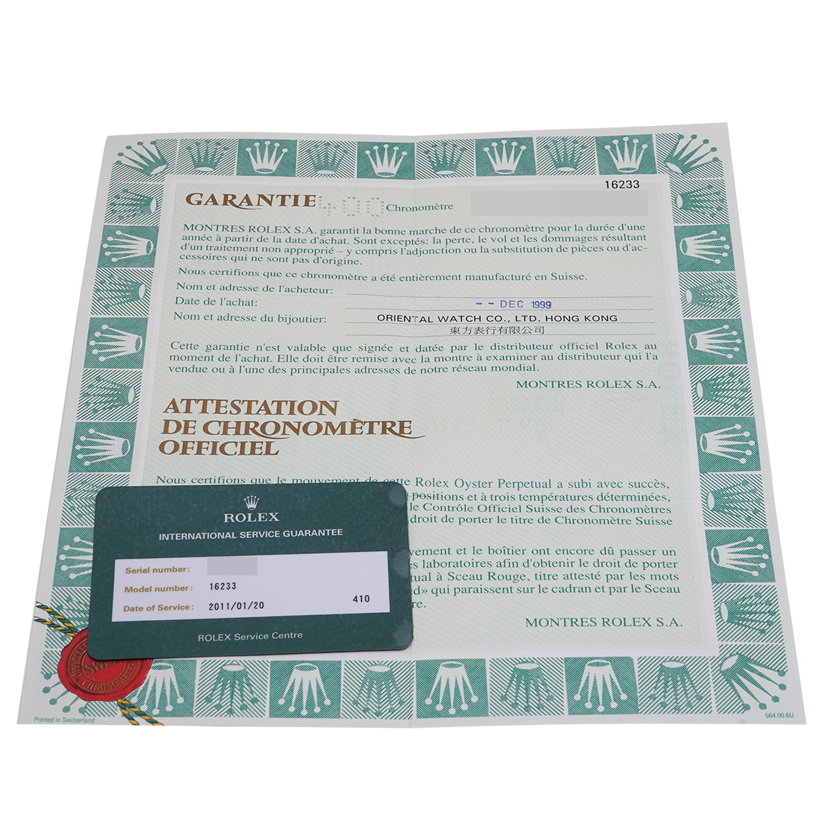 - メーカー保証書( 1999年12月海外購入) / タグ / 国際サービス保証書(2011年1月オーバーホール)