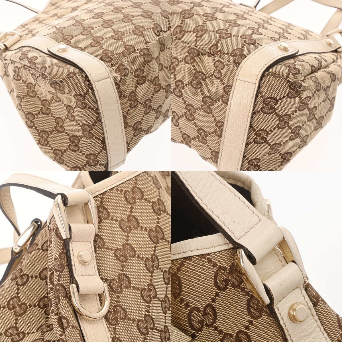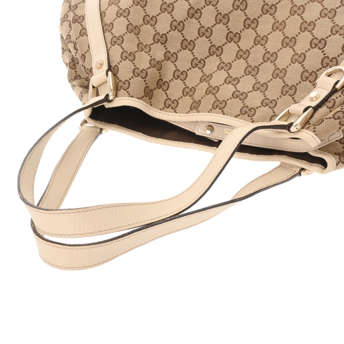グッチ アビートートバッグ ベージュ/エボニー/ホワイト 130736 GGキャンバス/レザー レディース バッグ 【中古】【bag】