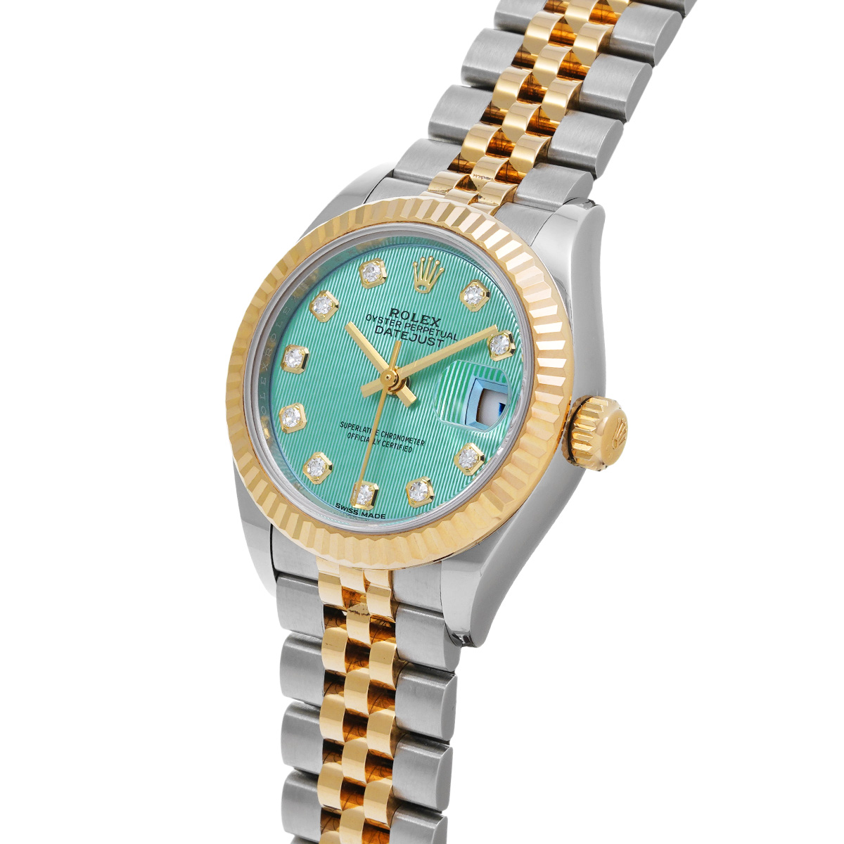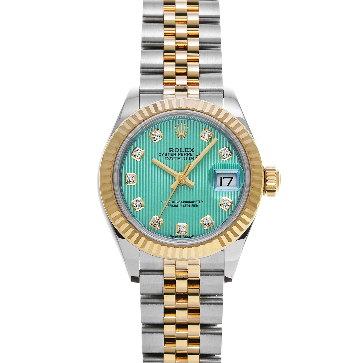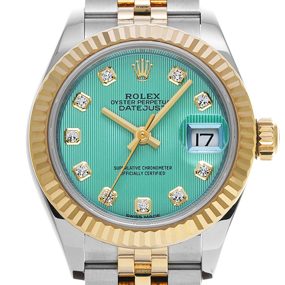 ロレックス レディ デイトジャスト 28 279173G ミントグリーンタペストリー/ダイヤモンド レディース 時計 【中古】【wristwatch】