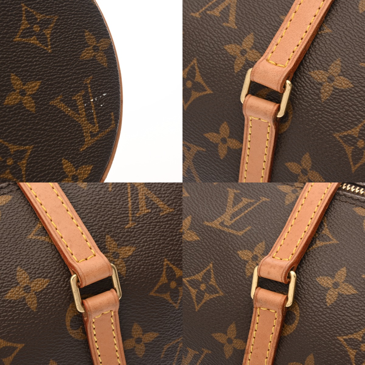 - 少々つぶれ、テカリ、若干べたつき、サイドに汚れ、コバにスレ、付属品含め持ち手クセやヨレ、ヌメ革にヤケ、金具に若干の色ハゲなど使用感がございます。