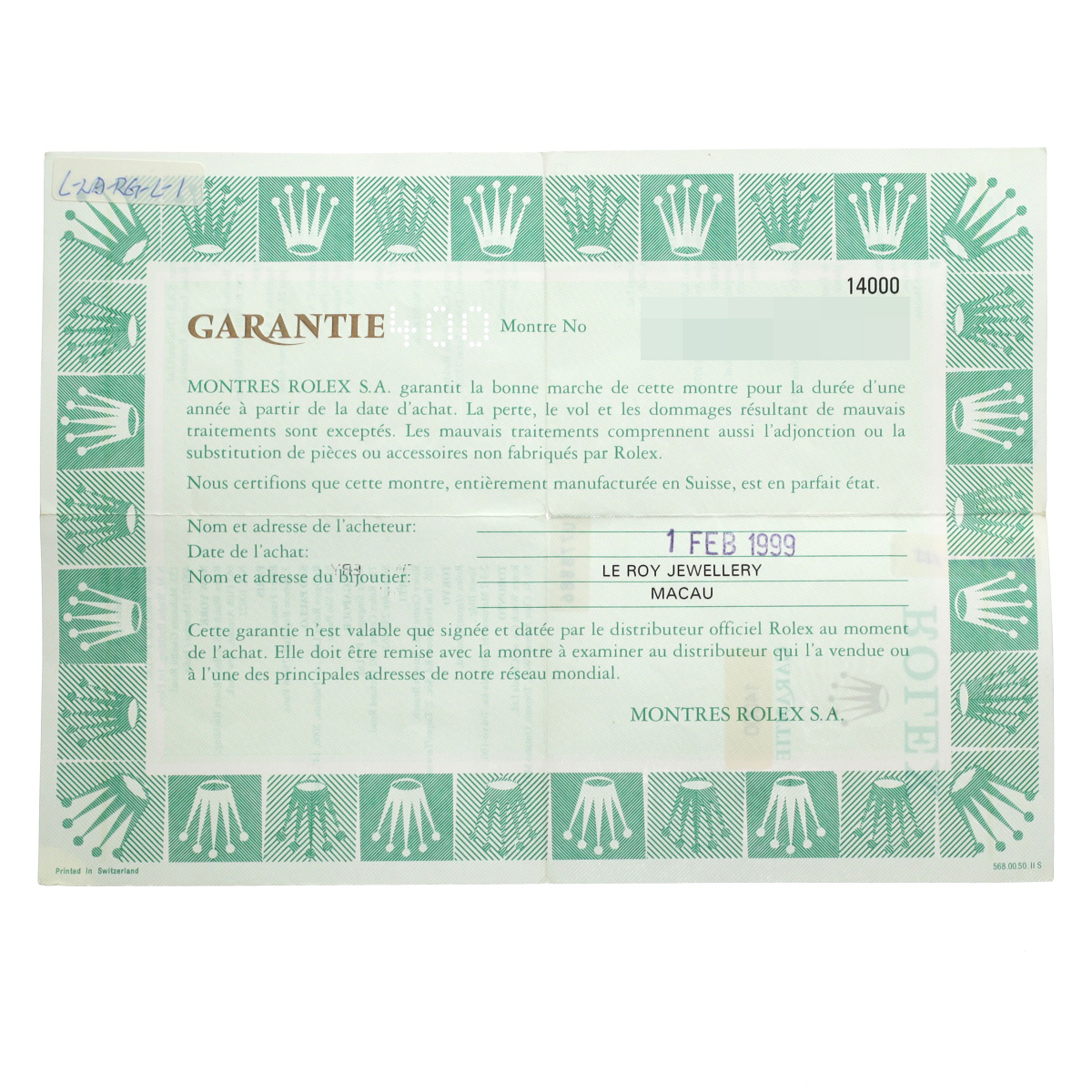 - メーカー保証書( 1999年2月海外購入)