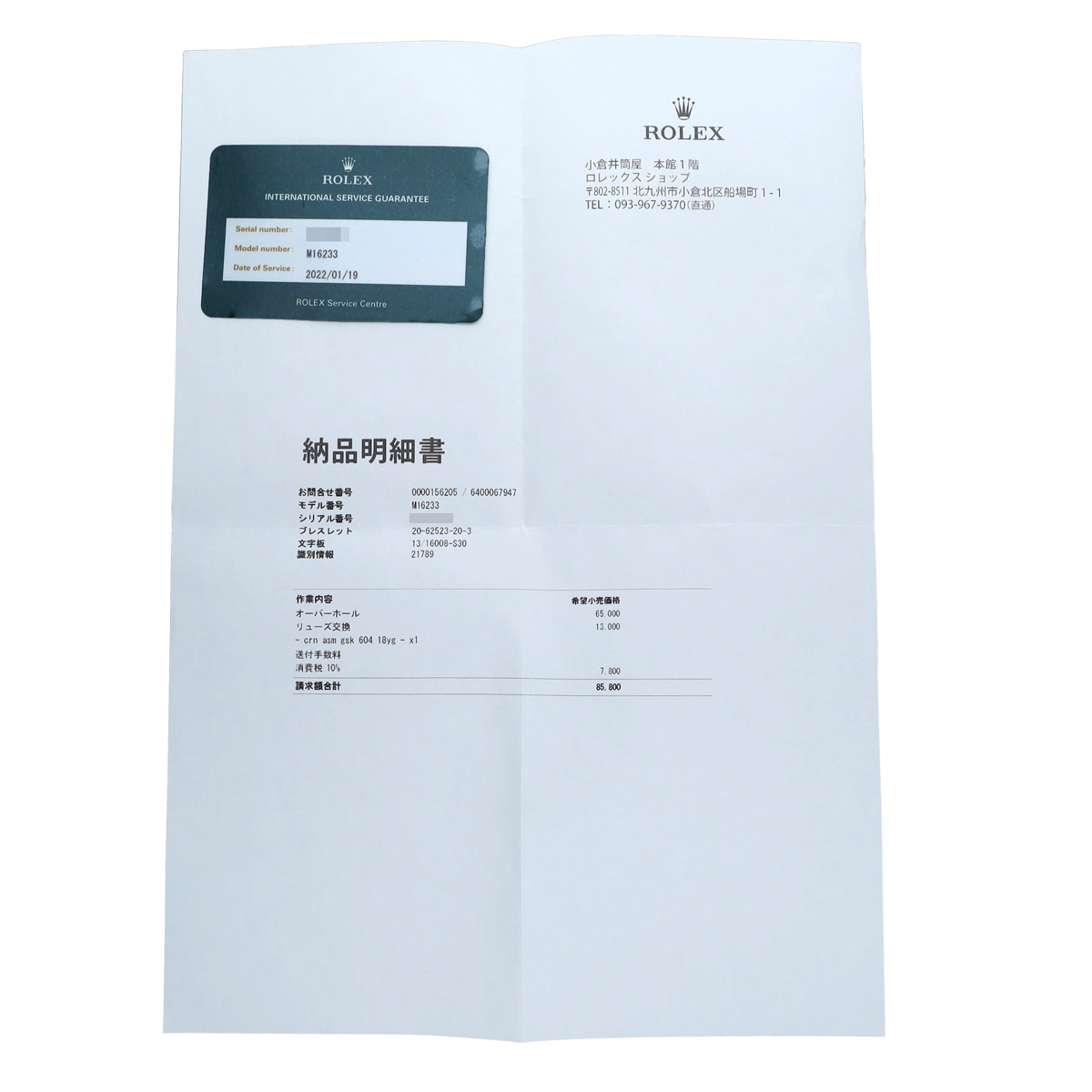 - 国際サービス保証書(2022年1月オーバーホール)