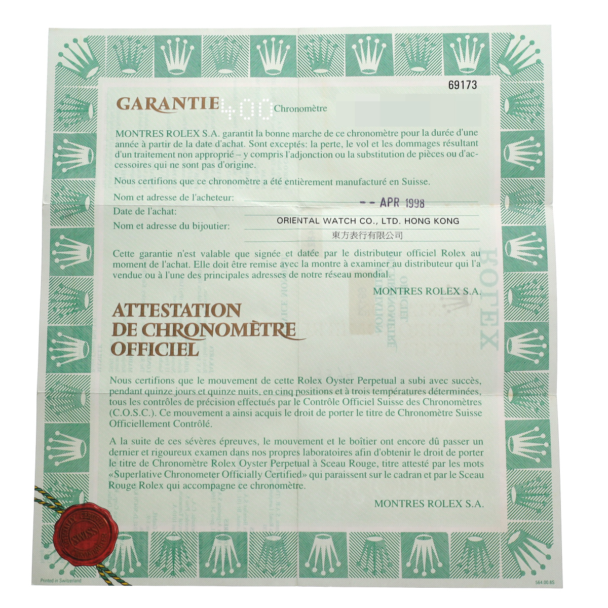 - メーカー保証書( 1998年4月海外購入) / タグ