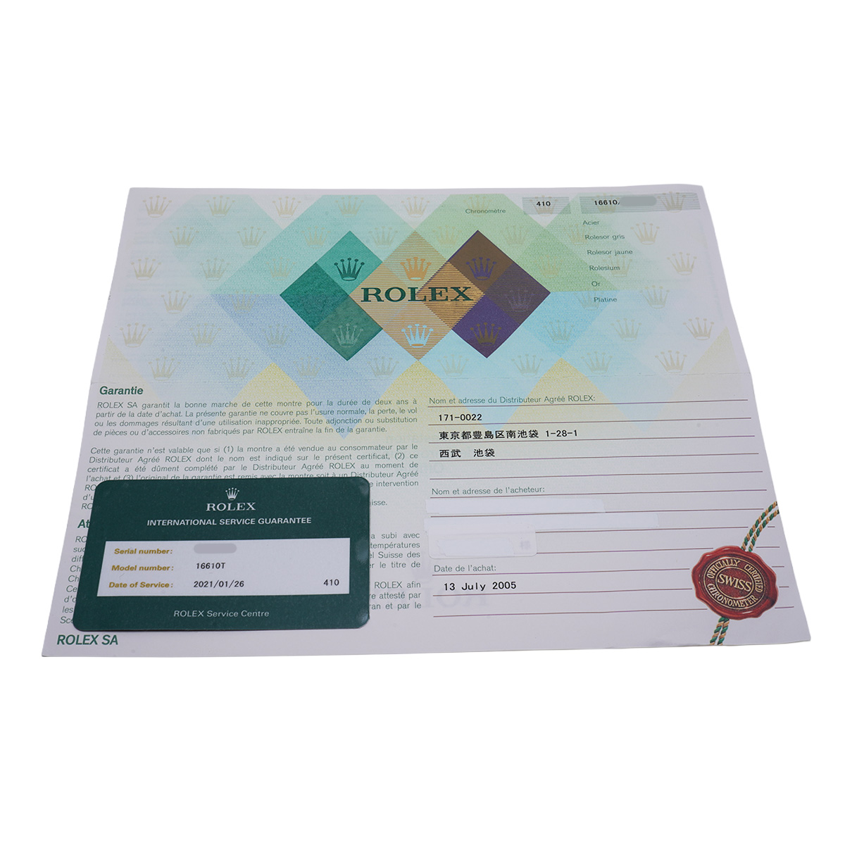 - メーカー保証書( 2005年7月国内購入) / メーカー箱(劣化)/冊子 / 国際サービス保証書(2021年1月オーバーホール)