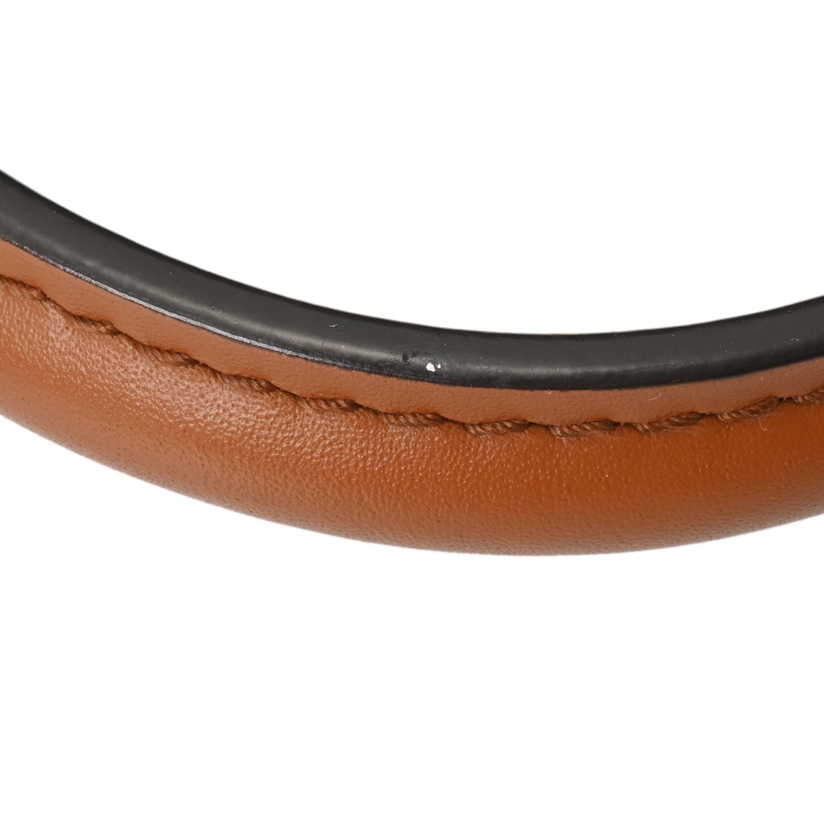 - ややテカリ、持ち手含め薄汚れやスレ、ポケットに僅かに広がり、コバに若干押し跡、ショルダーにシワ、金具にスレがございます。