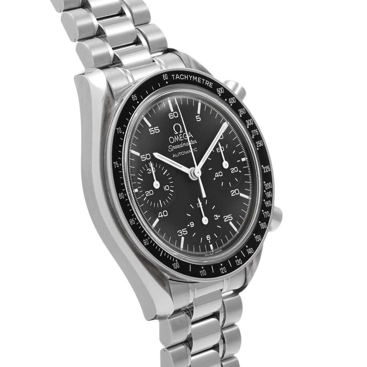 コメントこのスピードマスター リデュースドとも呼ばれるモデルは、オメガの代表的な時計であるスピードマスター プロフェッショナルのツールとして研ぎ澄まされた精悍さはそのままに、ケース径を39ミリに縮小して腕上での収まりを改善すると共に、自動巻きムーブメントの採用によって利便性を向上させることで、より多くの人々の日常に寄り添える時計を目指したものです。