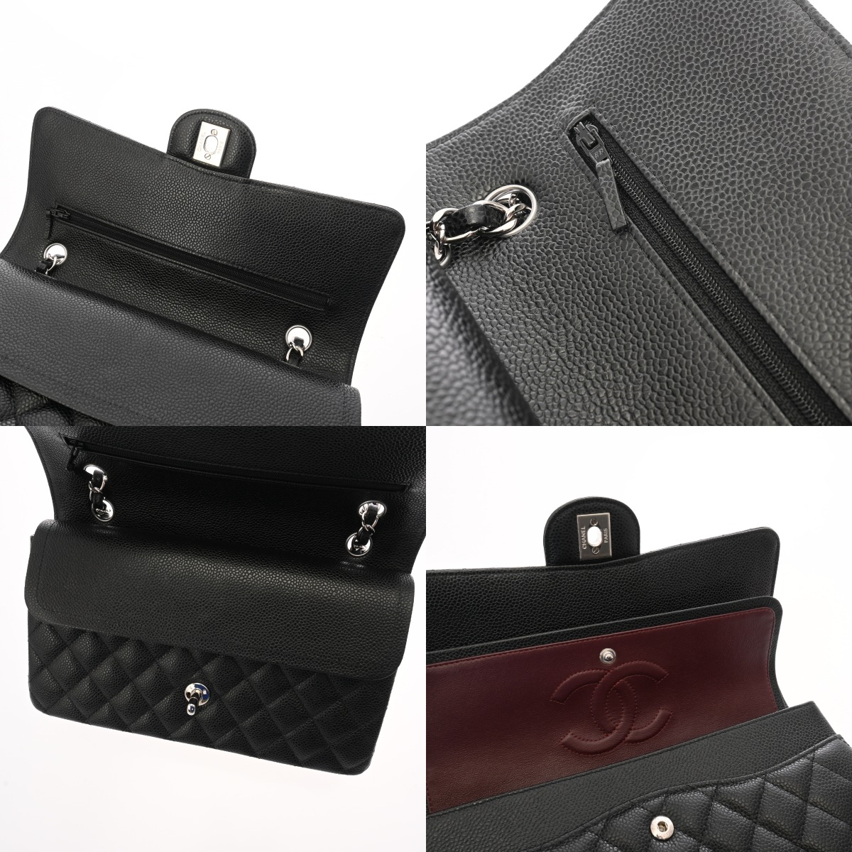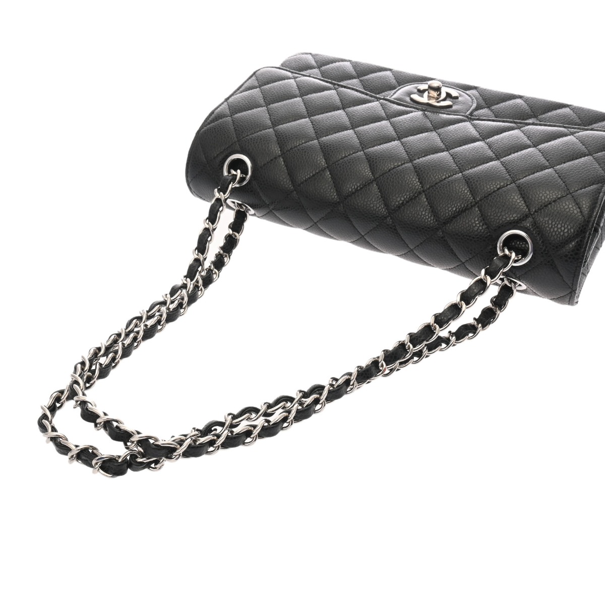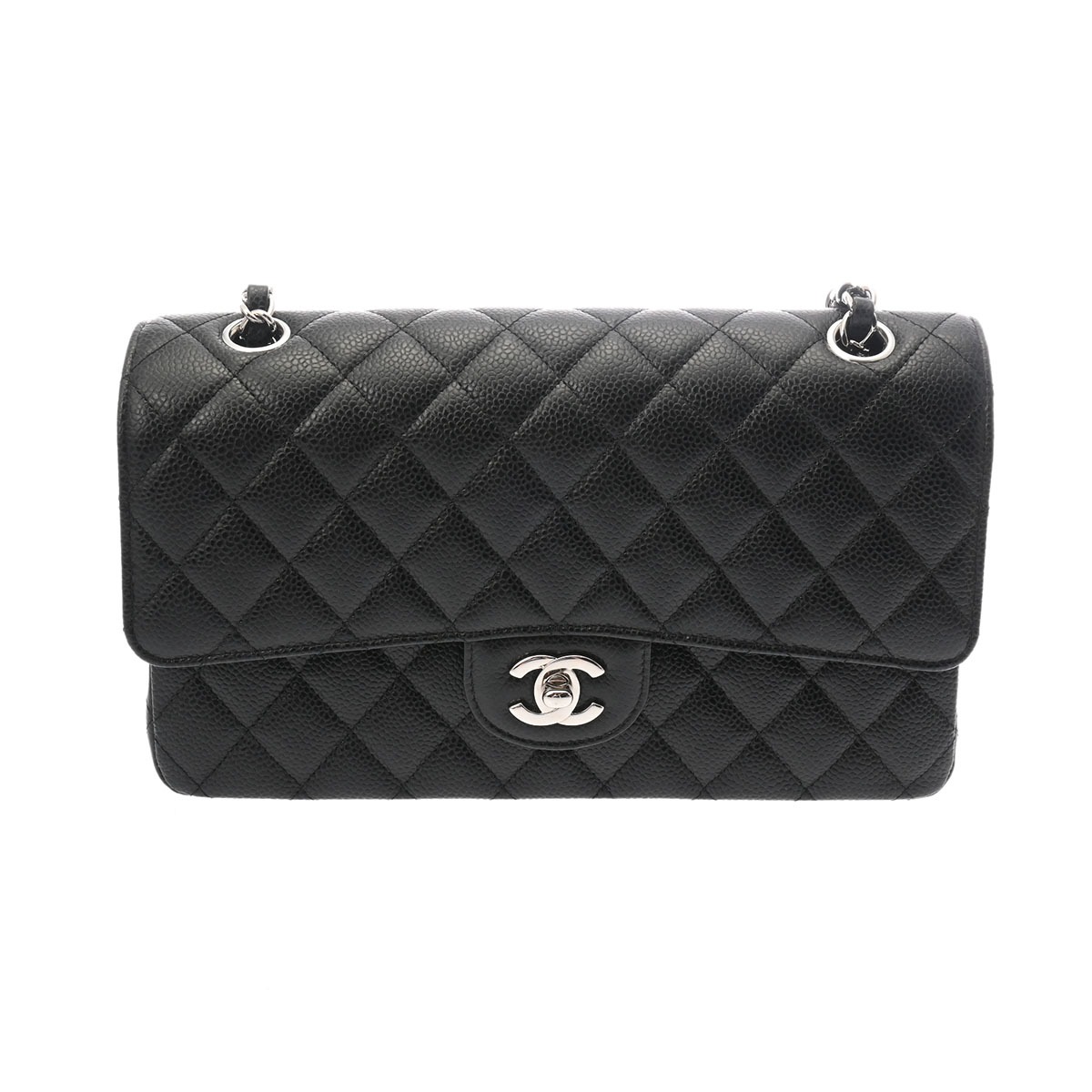 シャネル マトラッセ WフラップWチェーンショルダー 25 ブラック A01112 キャビアスキン レディース バッグ 【中古】【bag】