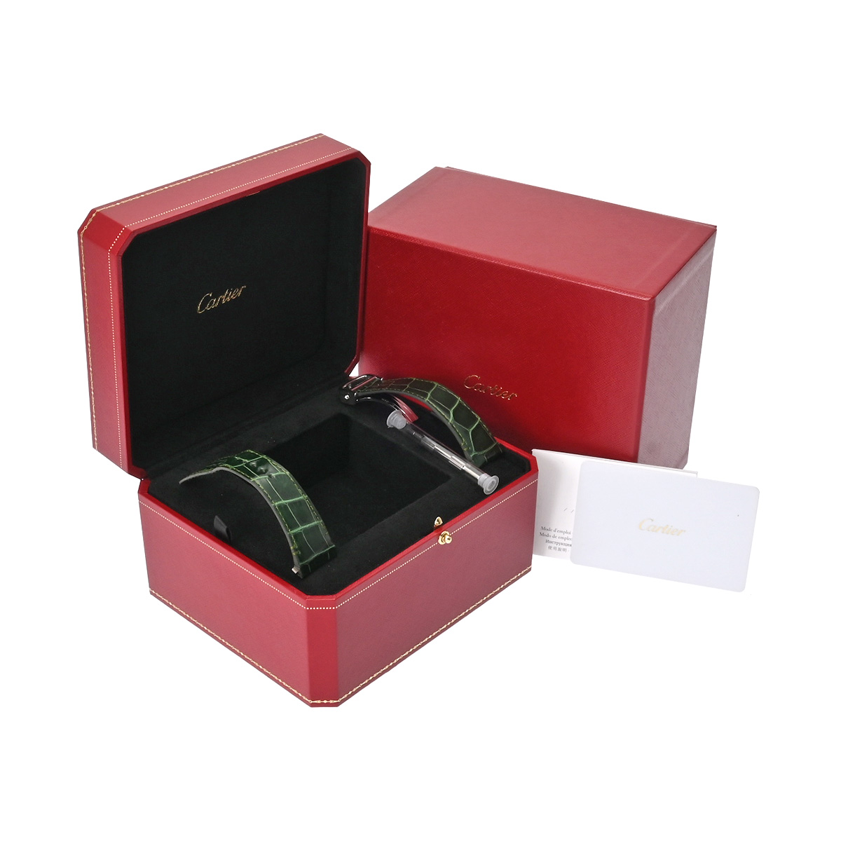 - メーカー保証書( 2024年5月購入) / 替えベルト( アリゲーター/グリーン(やや使用感有)) / メーカー箱(枕欠品)/冊子