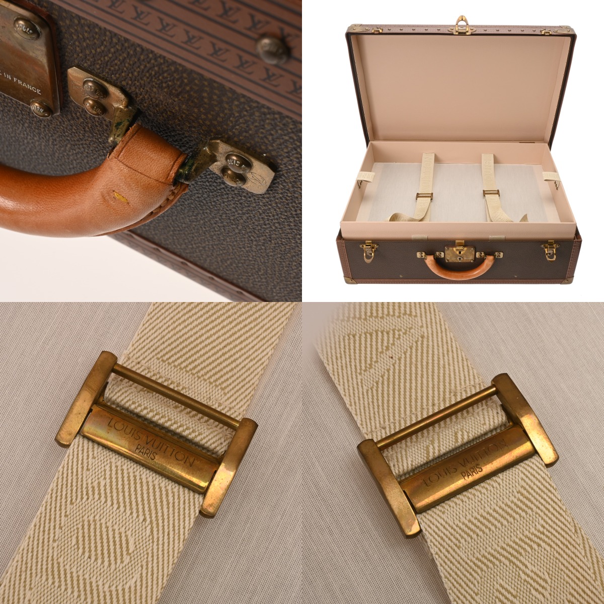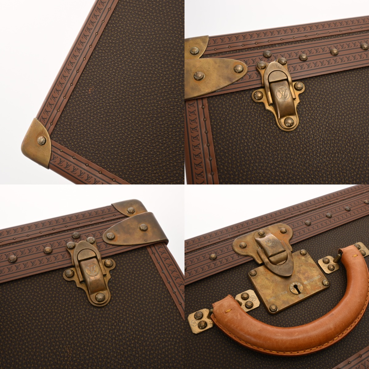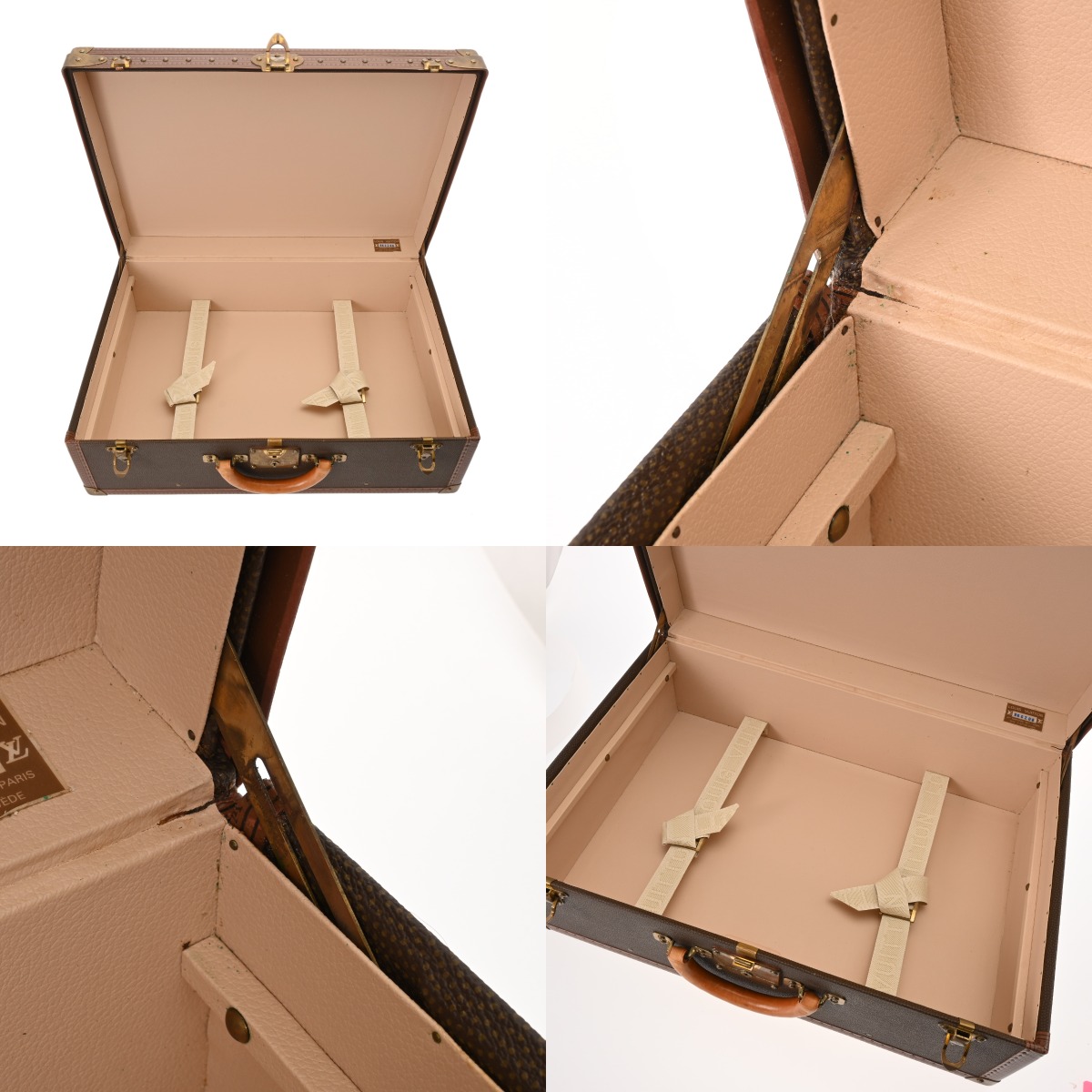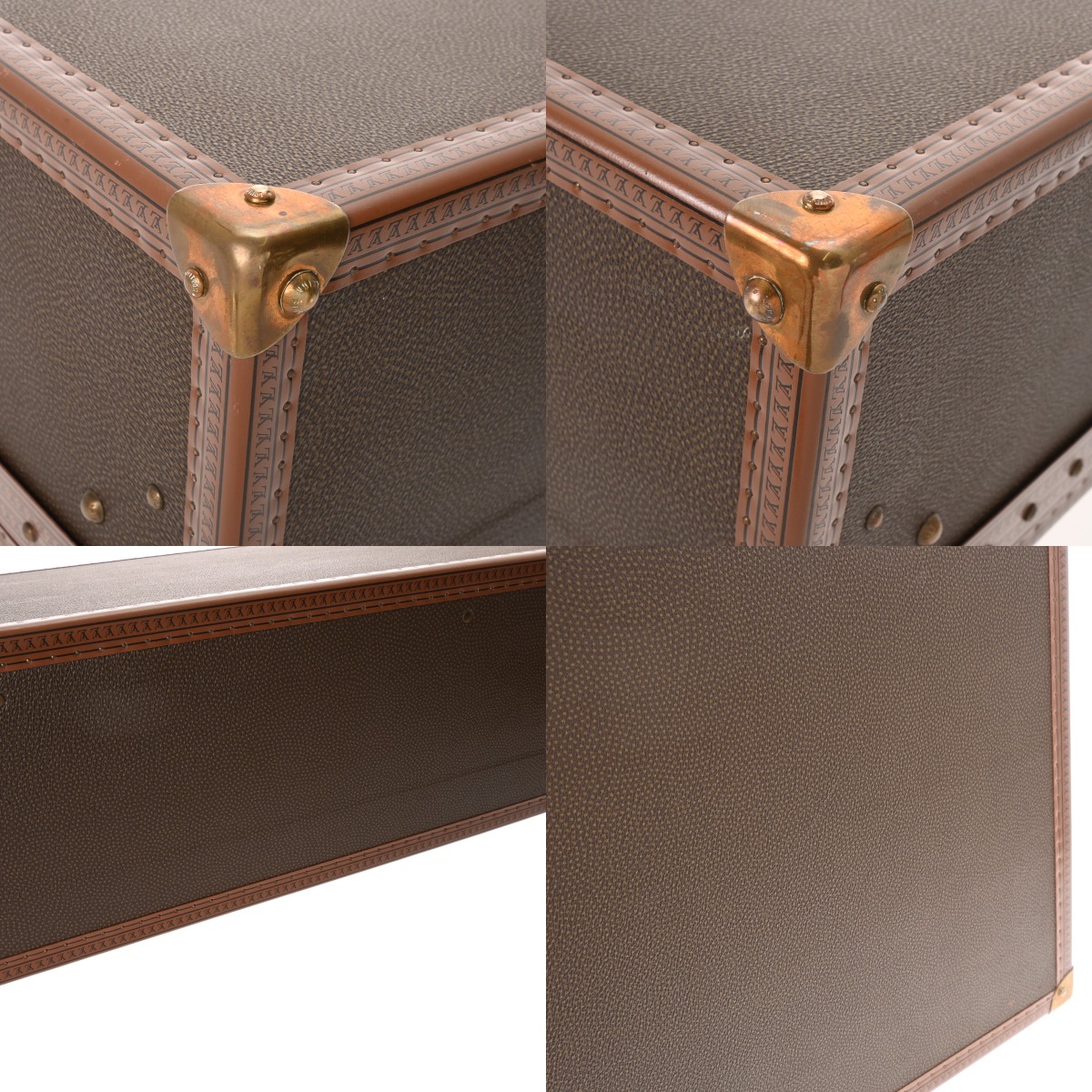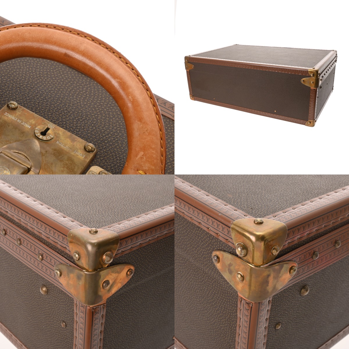 - 汚れ、角含めスレや若干キズ、コバにハゲやハガレ、ヌメ革にヤケやシミ、金具に錆や変色など少々使用感がございます。