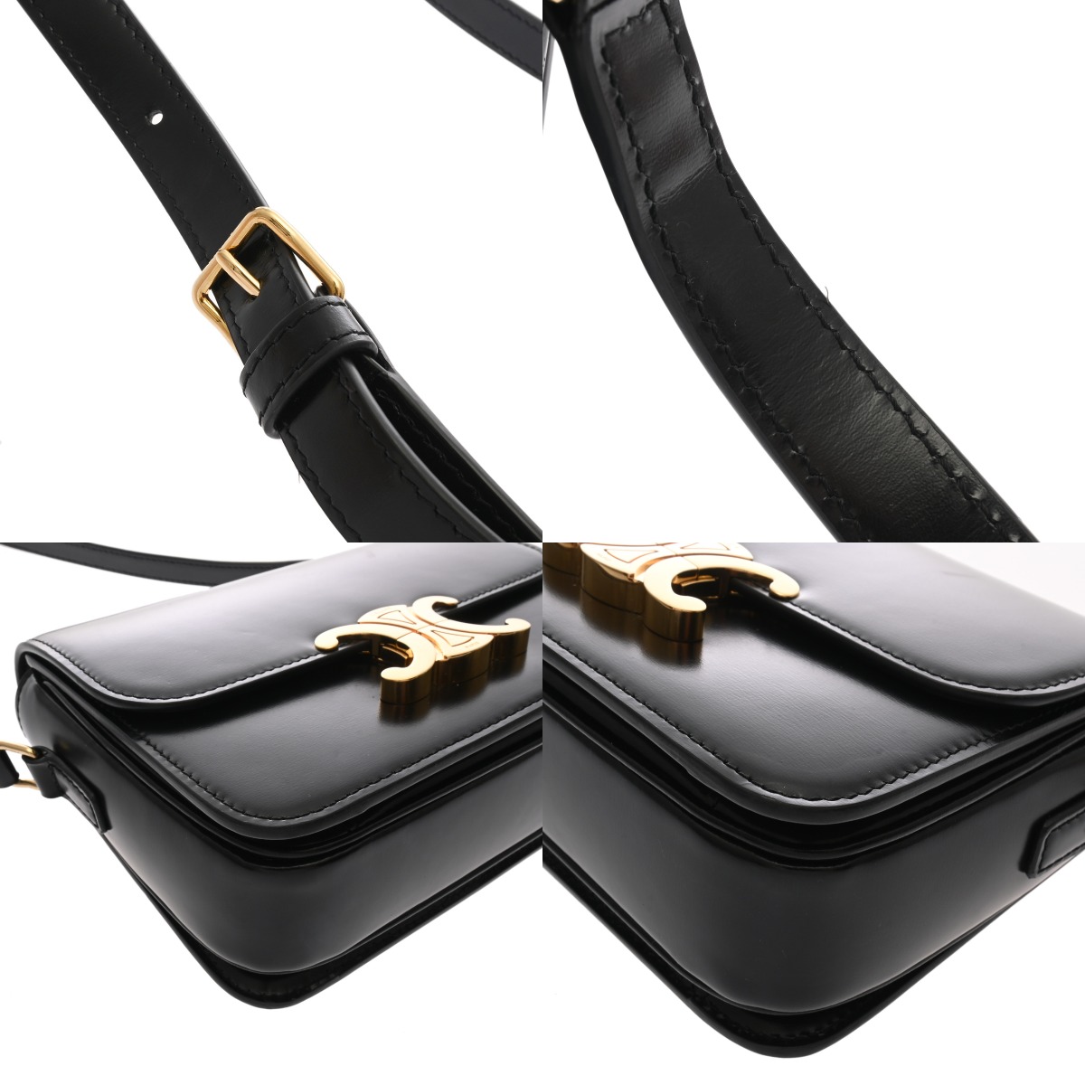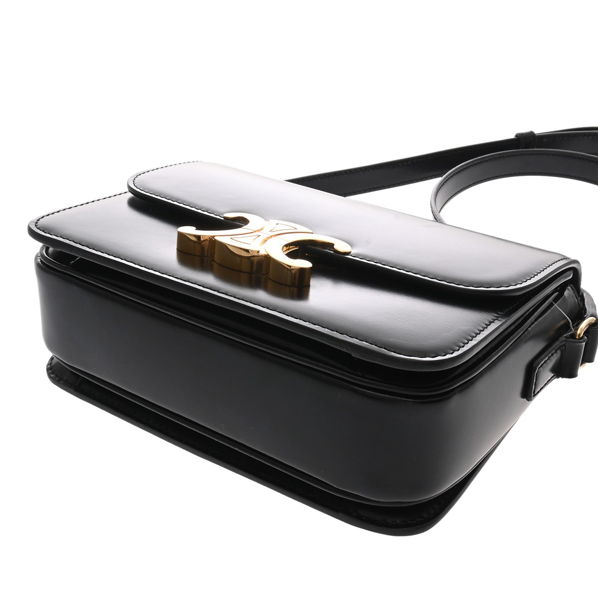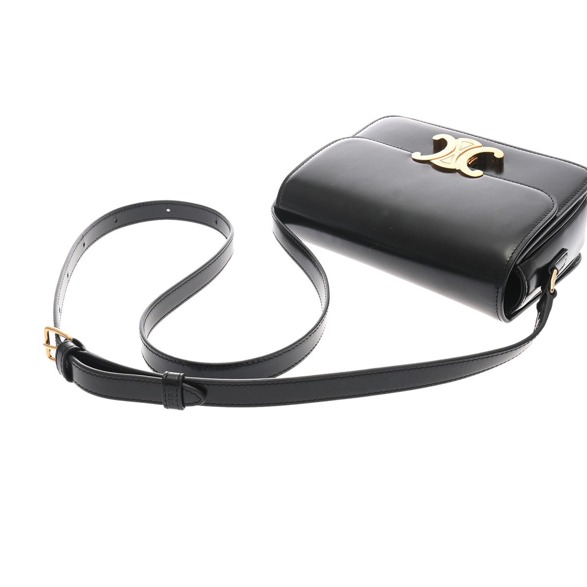 セリーヌ ティーン トリオンフ バッグ ブラック 188423BF4 38NO シャイニーカーフ レディース バッグ 【中古】【bag】