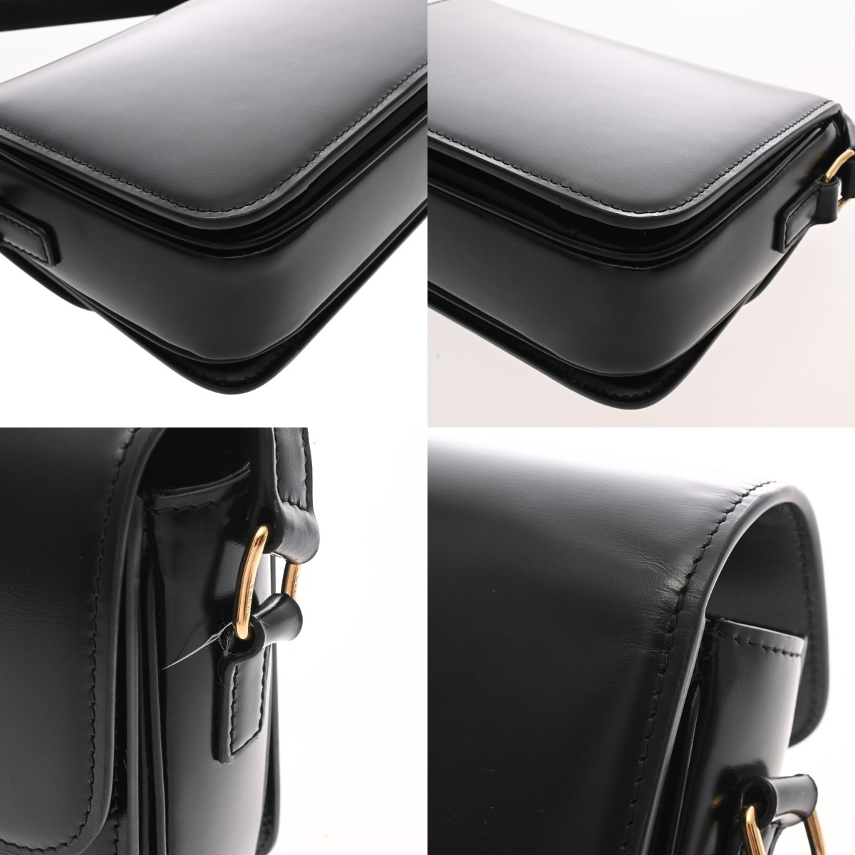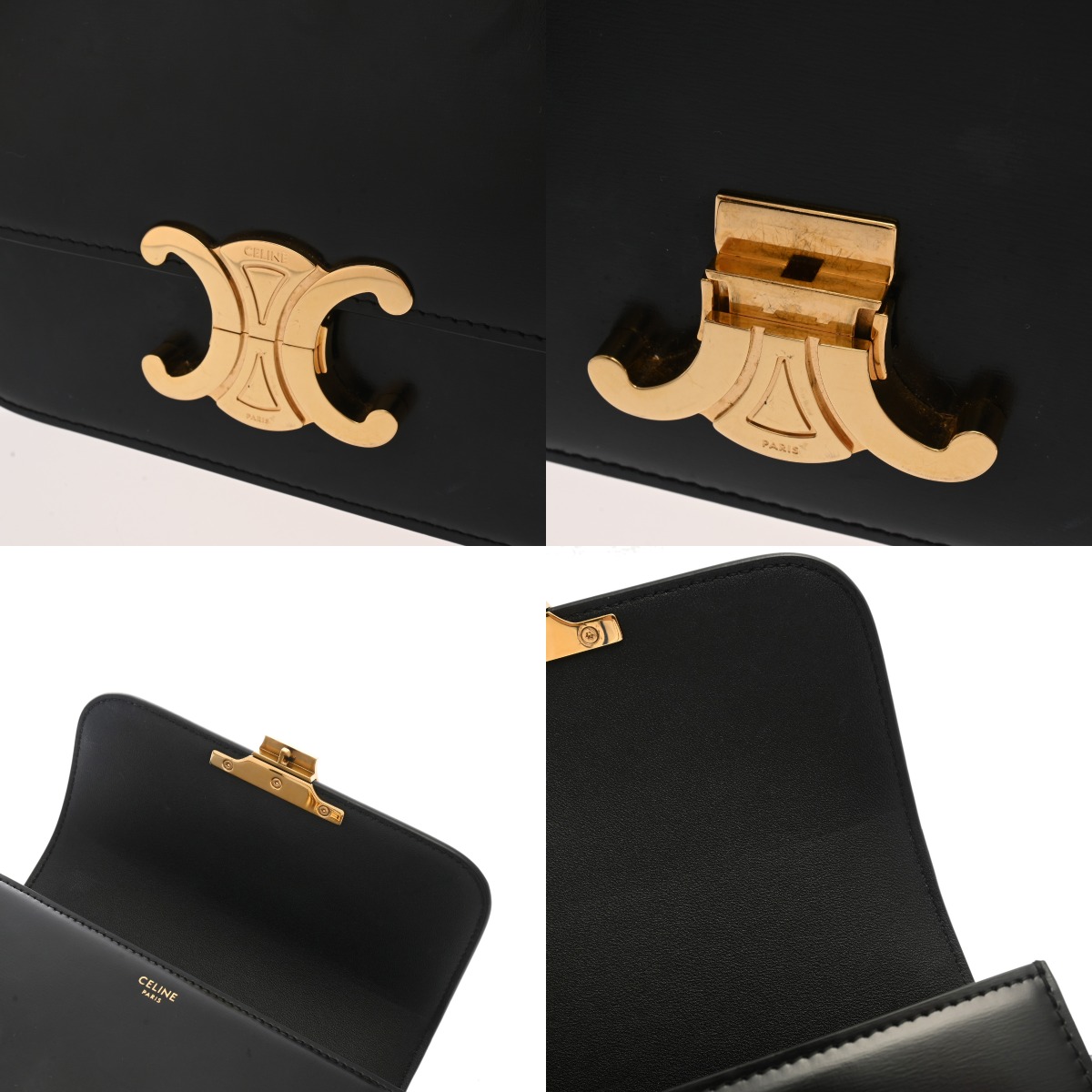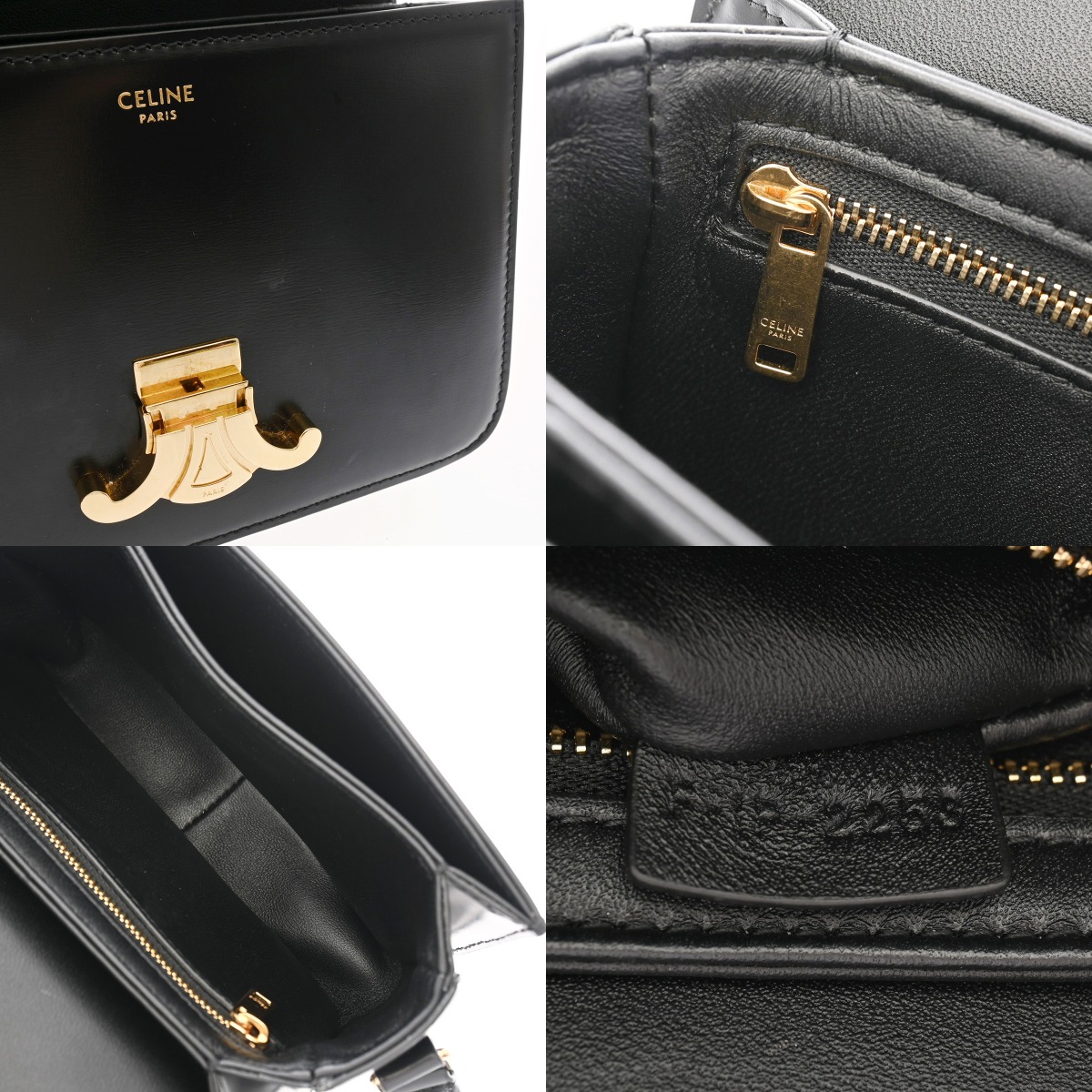 セリーヌ ティーン トリオンフ バッグ ブラック 188423BF4 38NO シャイニーカーフ レディース バッグ 【中古】【bag】