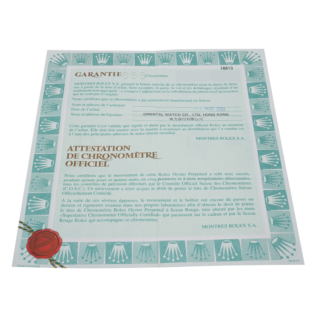 - 時計の当社保証