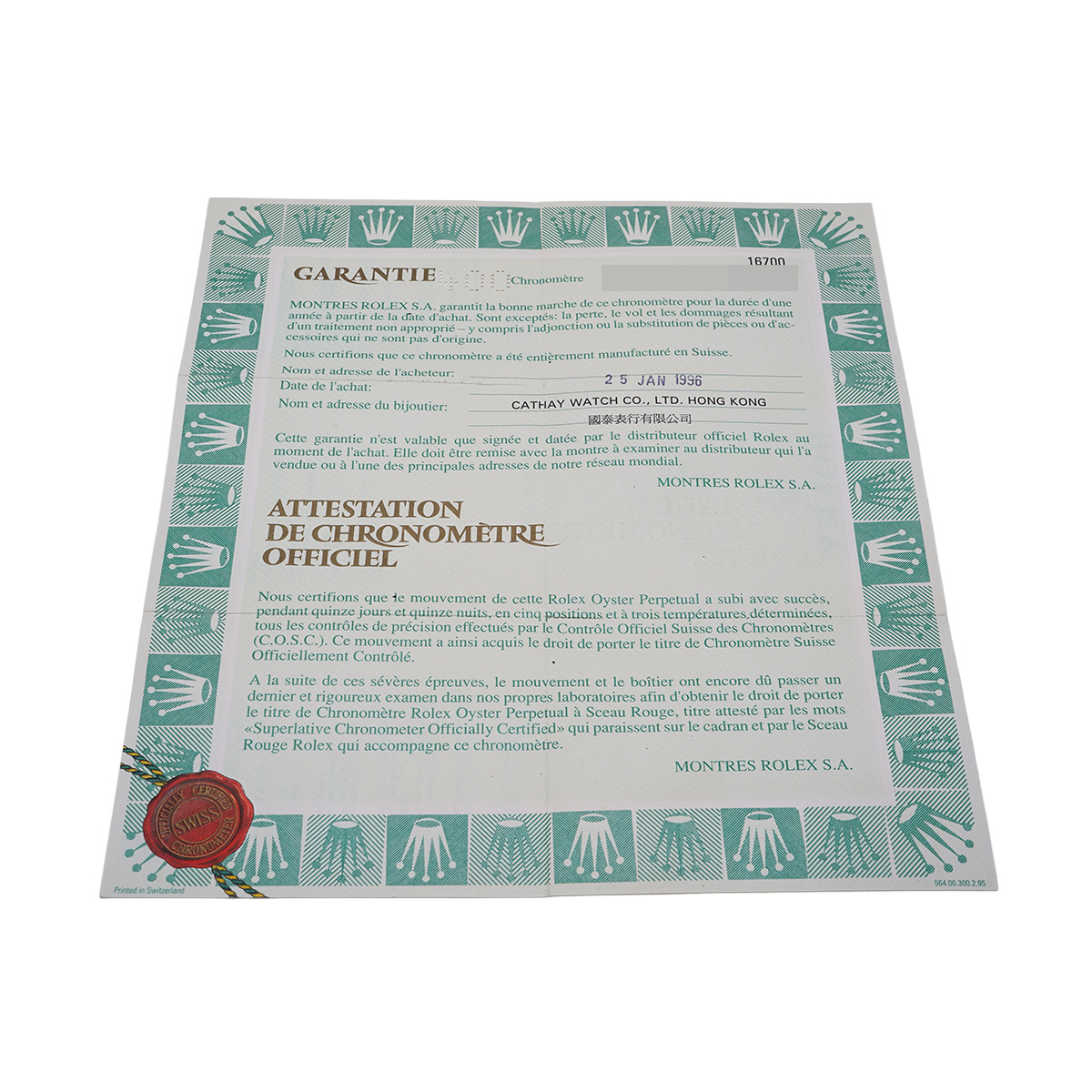 - メーカー保証書( 1996年1月海外購入)