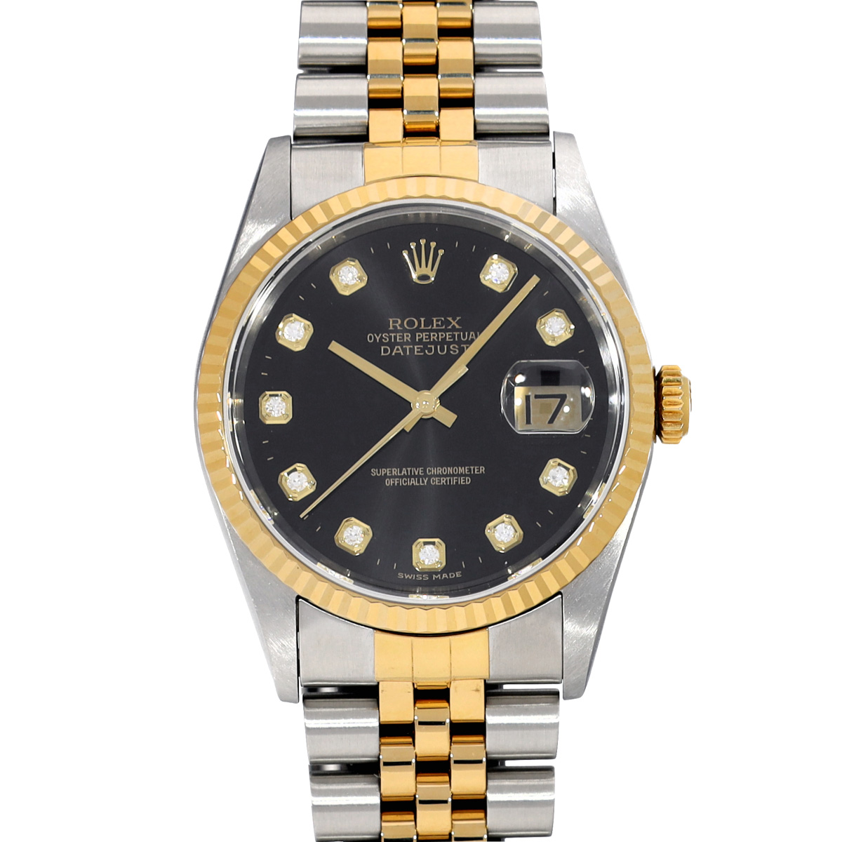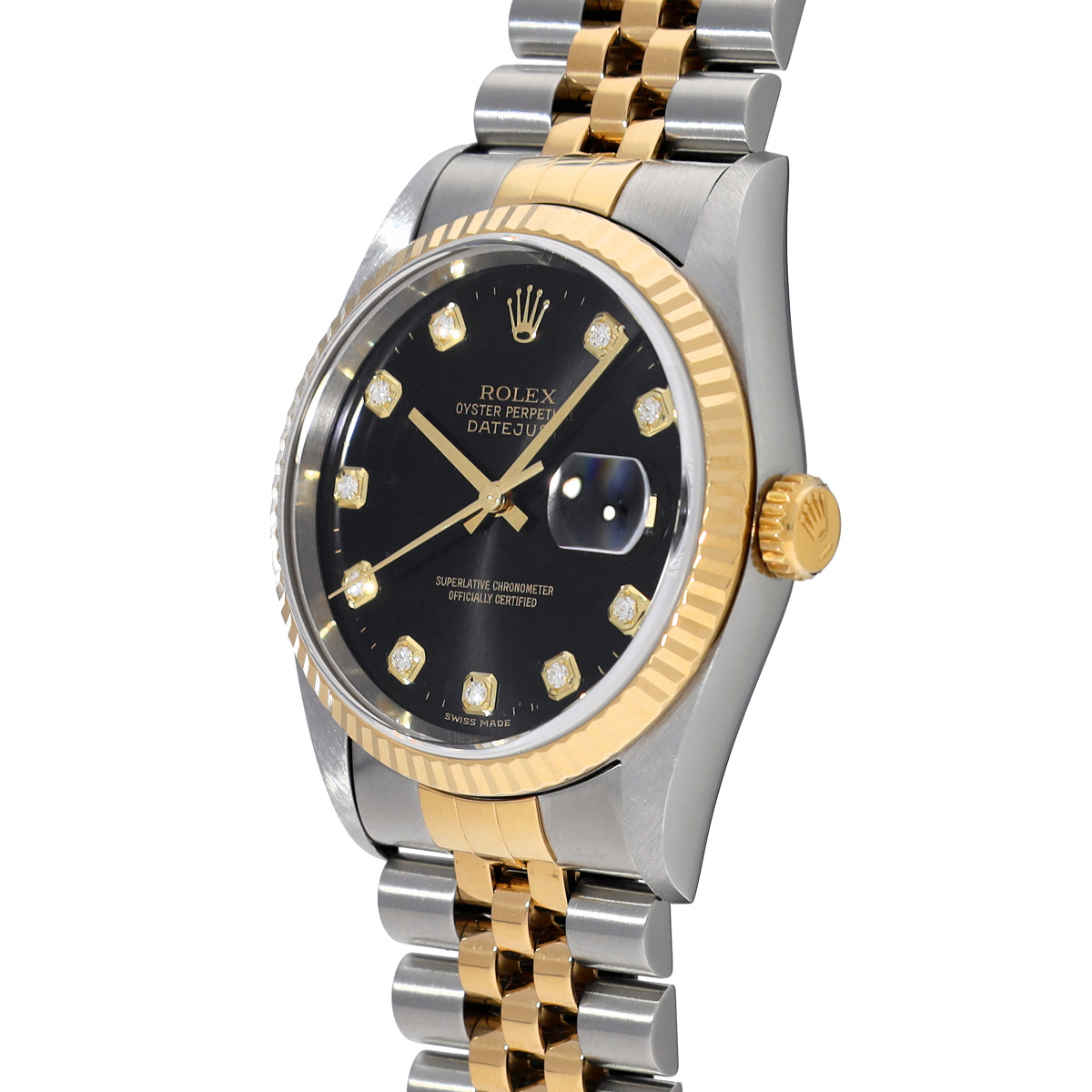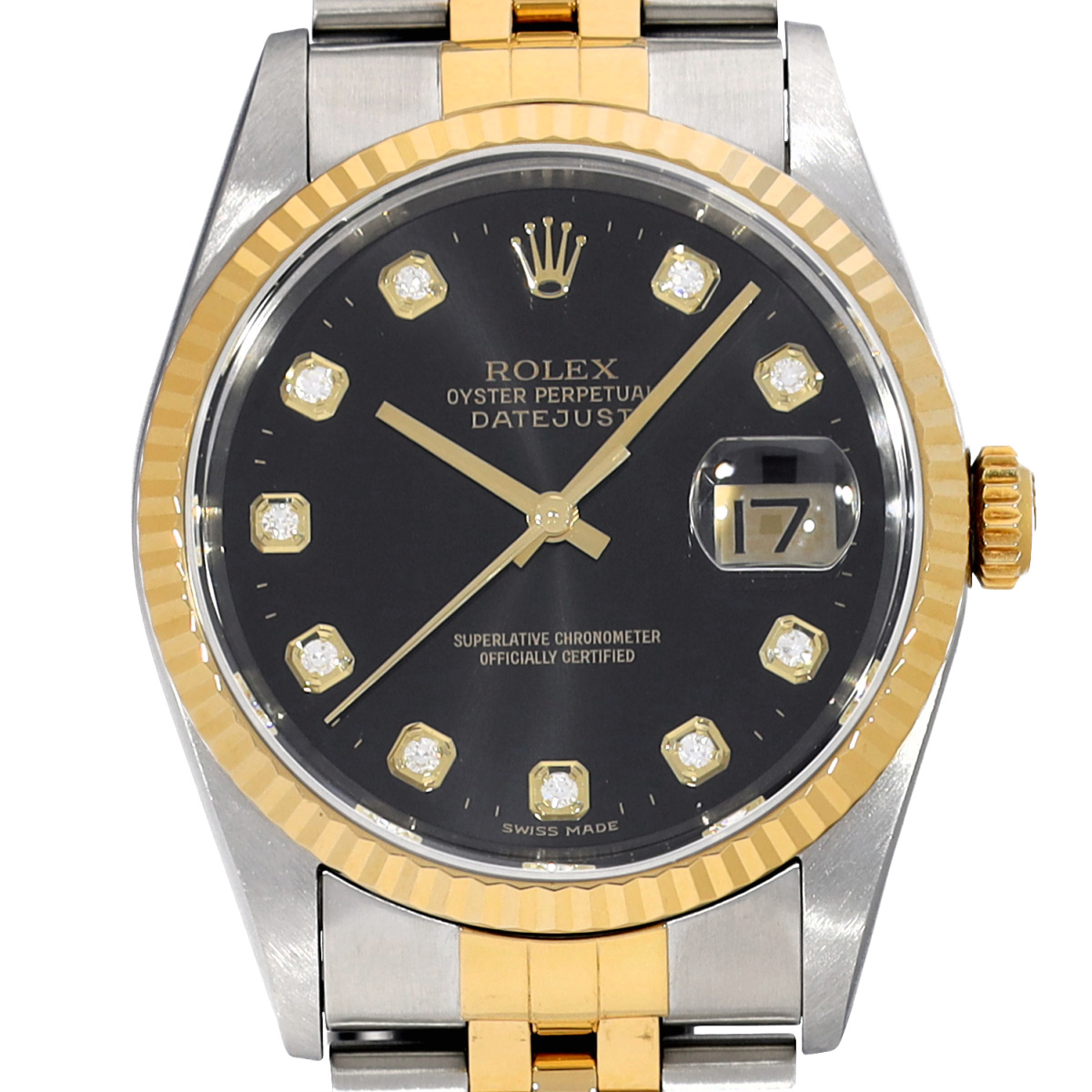 ロレックス デイトジャスト 16233G ブラック/ダイヤモンド メンズ 時計 【中古】【wristwatch】