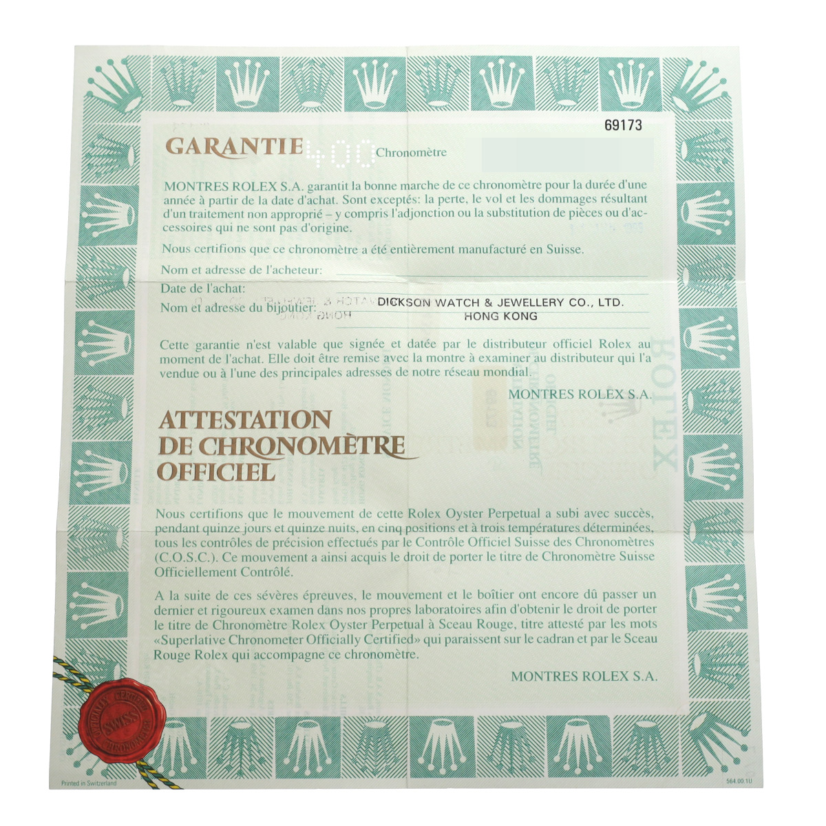 - 時計の当社保証