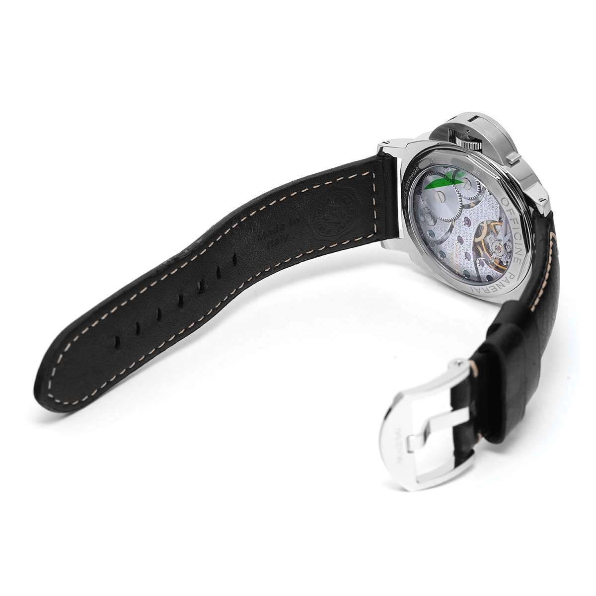 コメントパネライの記念すべきリファレンス番号 PAM00001を冠するルミノール マリーナの裏蓋をサファイアクリスタル製のトランスパレントバックに変更して、2002年から2015年の長きに渡って生産が続けられたのがこのPAM00111です。