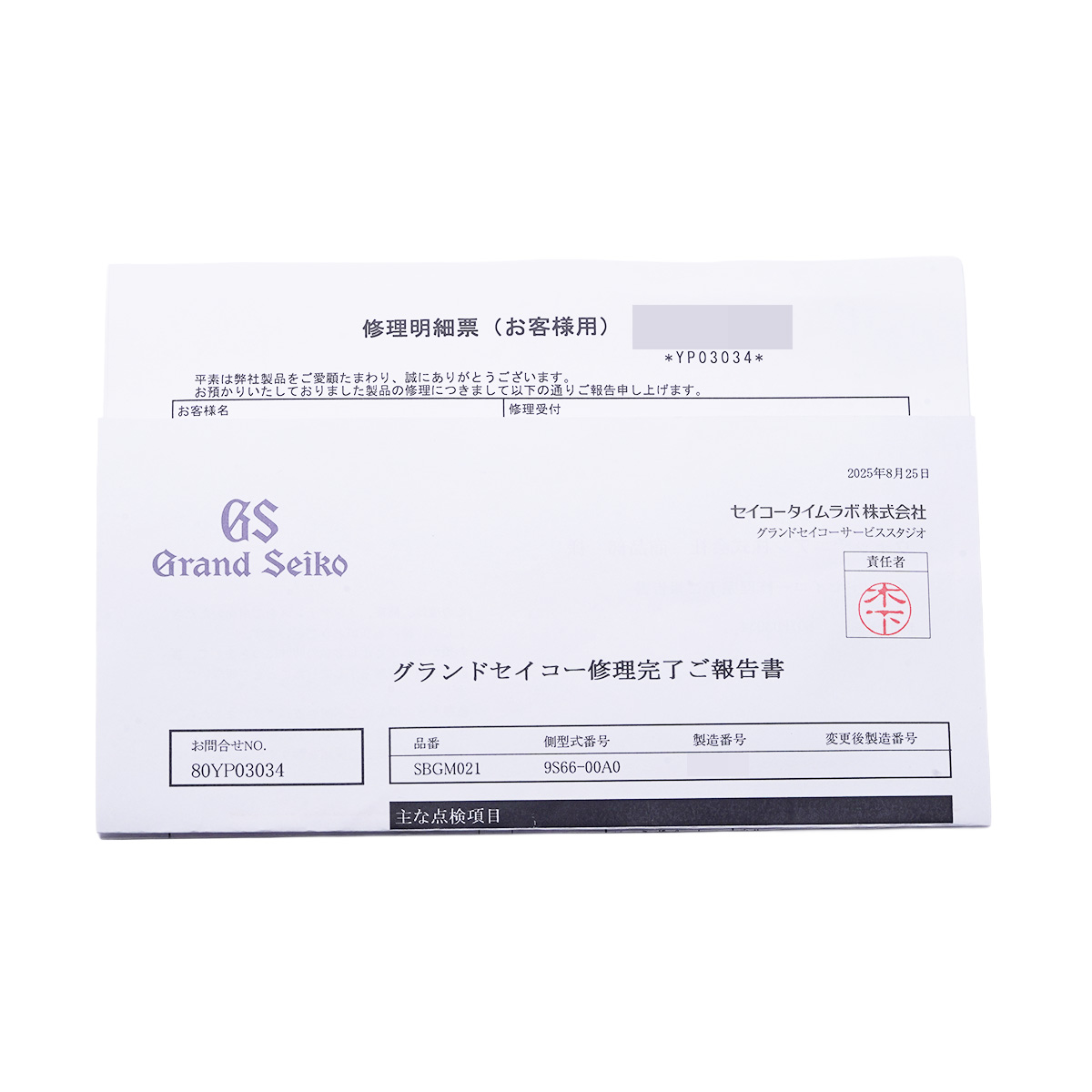 - 修理明細票/修理完了ご報告書(2025年8月バンド交換他)