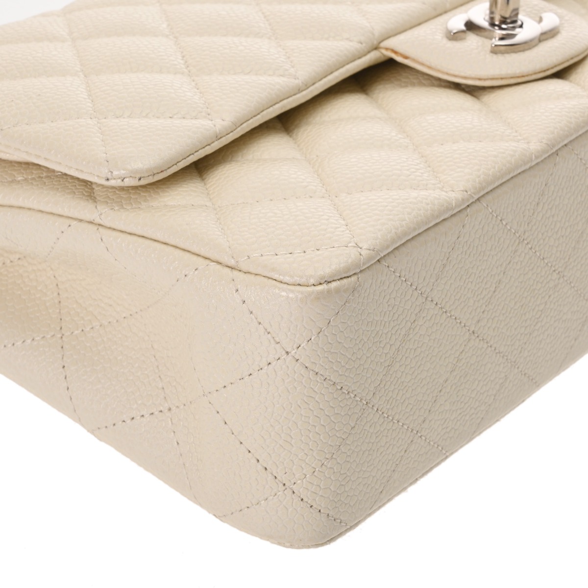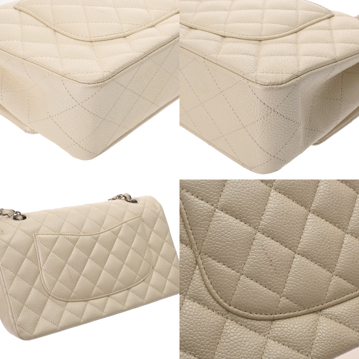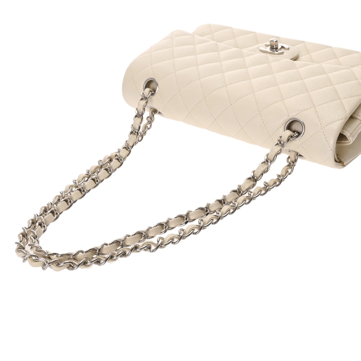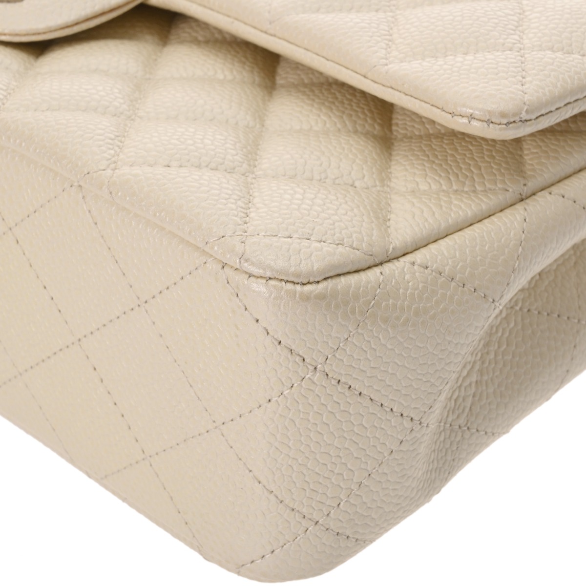 シャネル マトラッセ WフラップWチェーンショルダー 25cm ホワイト A01112 キャビアスキン レディース バッグ 【中古】【bag】