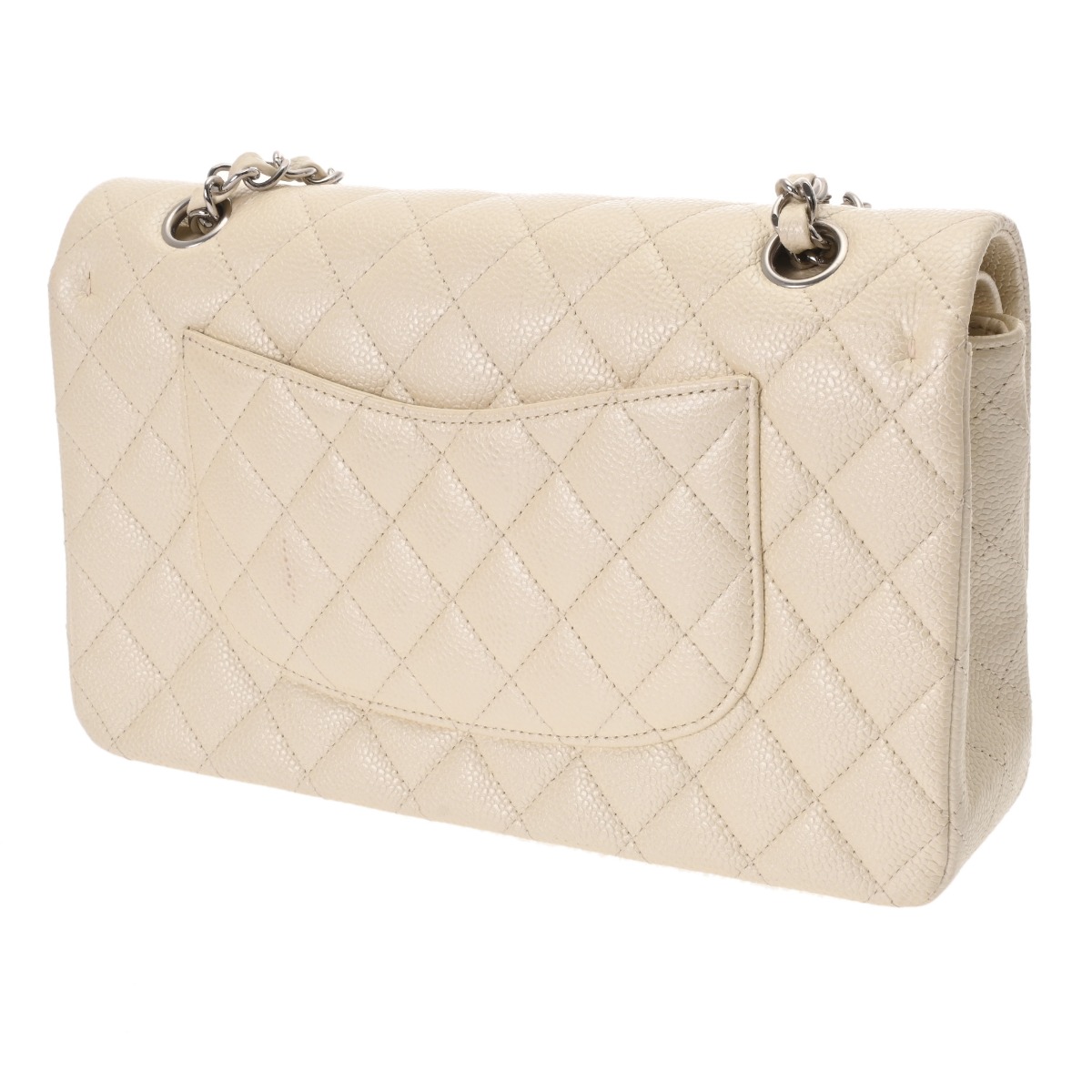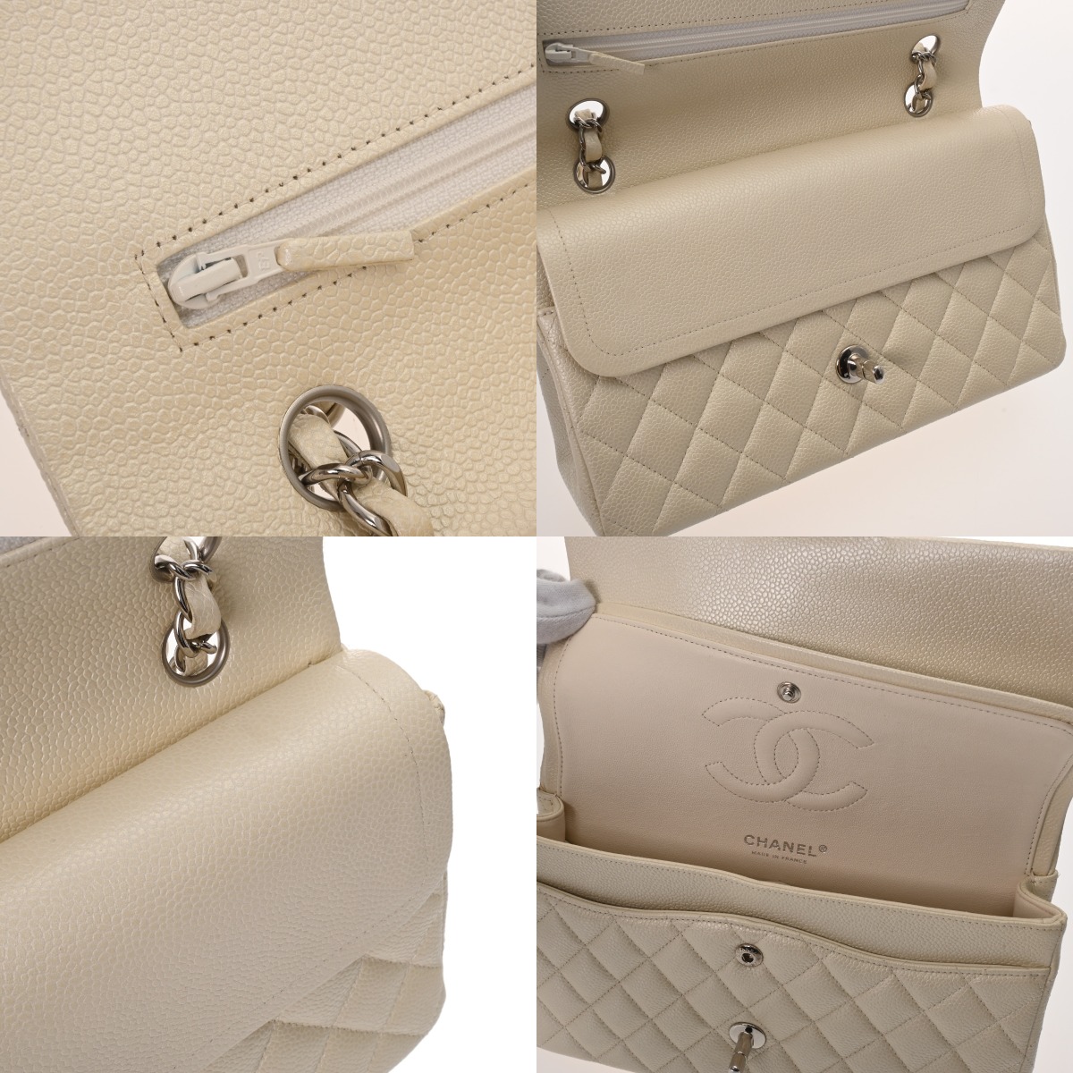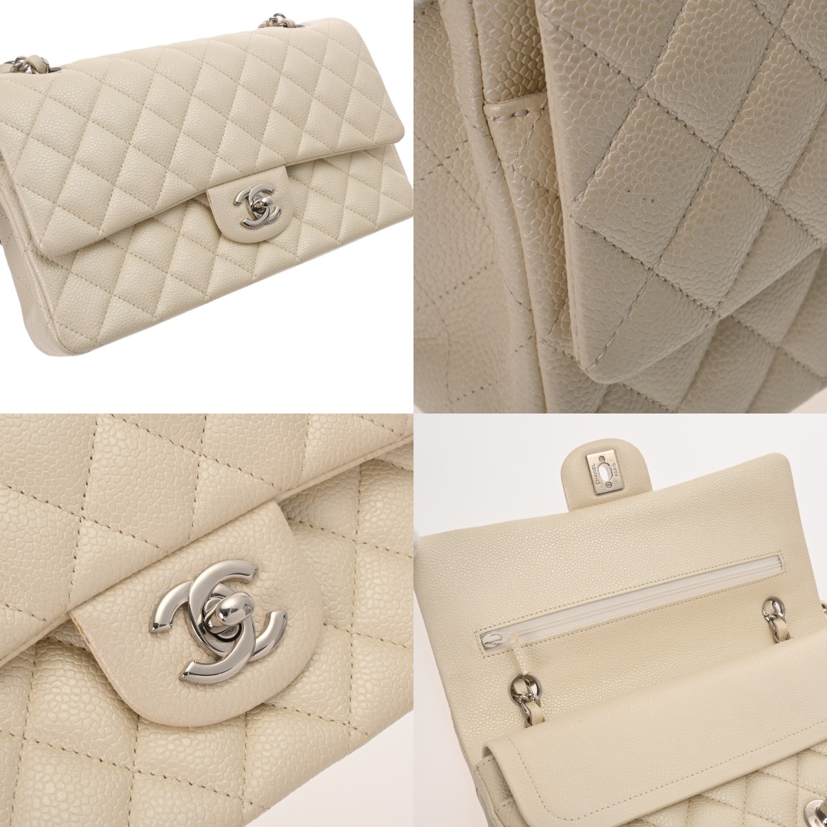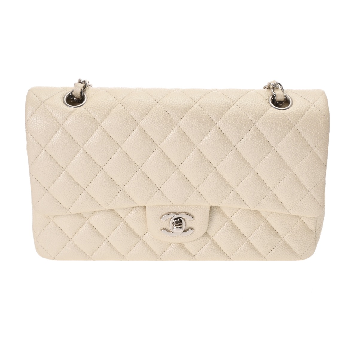 シャネル マトラッセ WフラップWチェーンショルダー 25cm ホワイト A01112 キャビアスキン レディース バッグ 【中古】【bag】