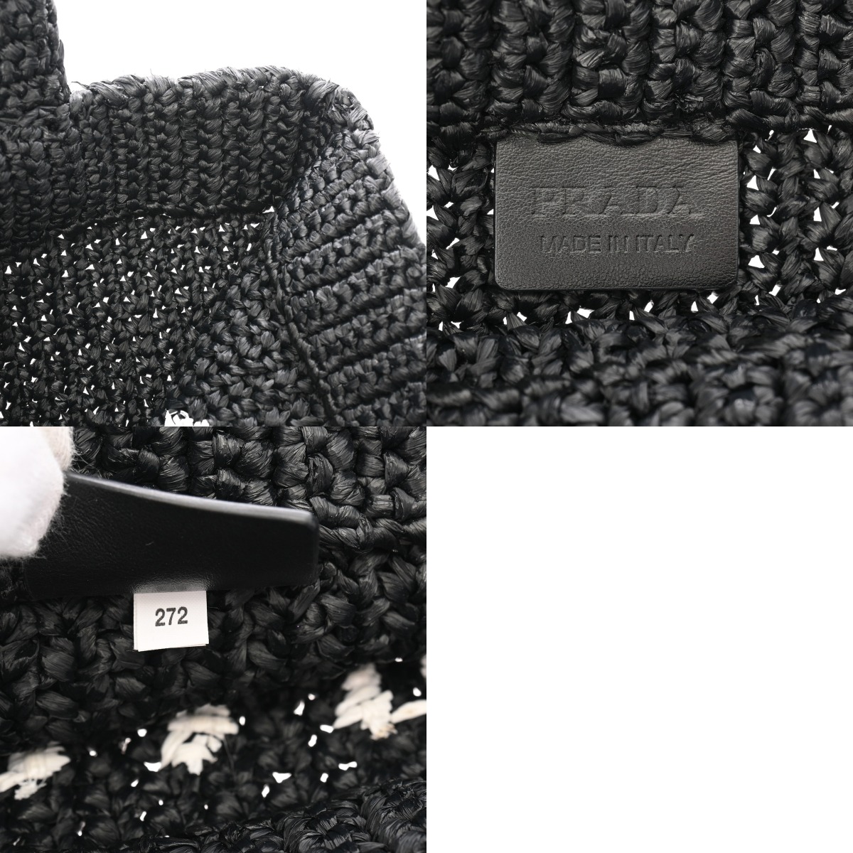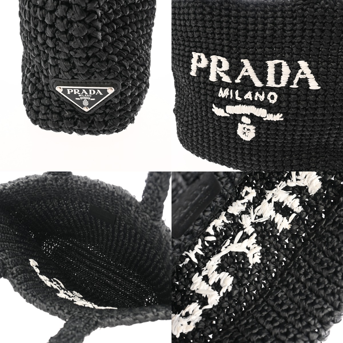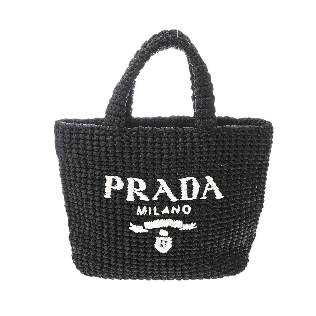 プラダ スモール クロシェ トートバッグ ブラック 1BG422 ラフィア レディース バッグ 【中古】【bag】