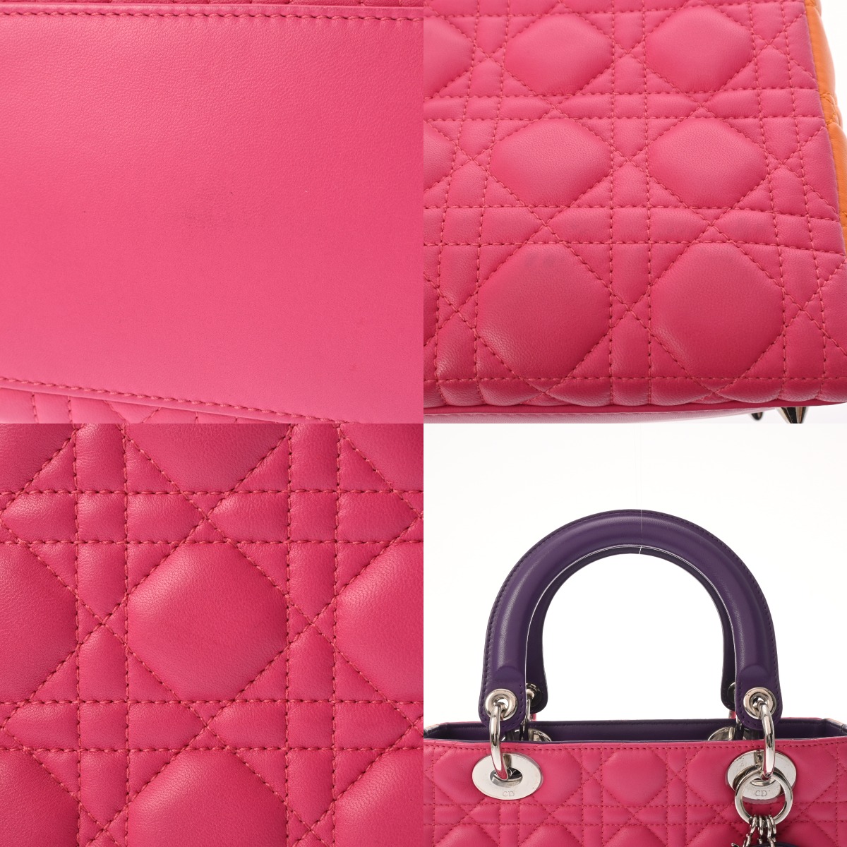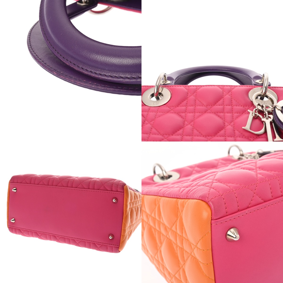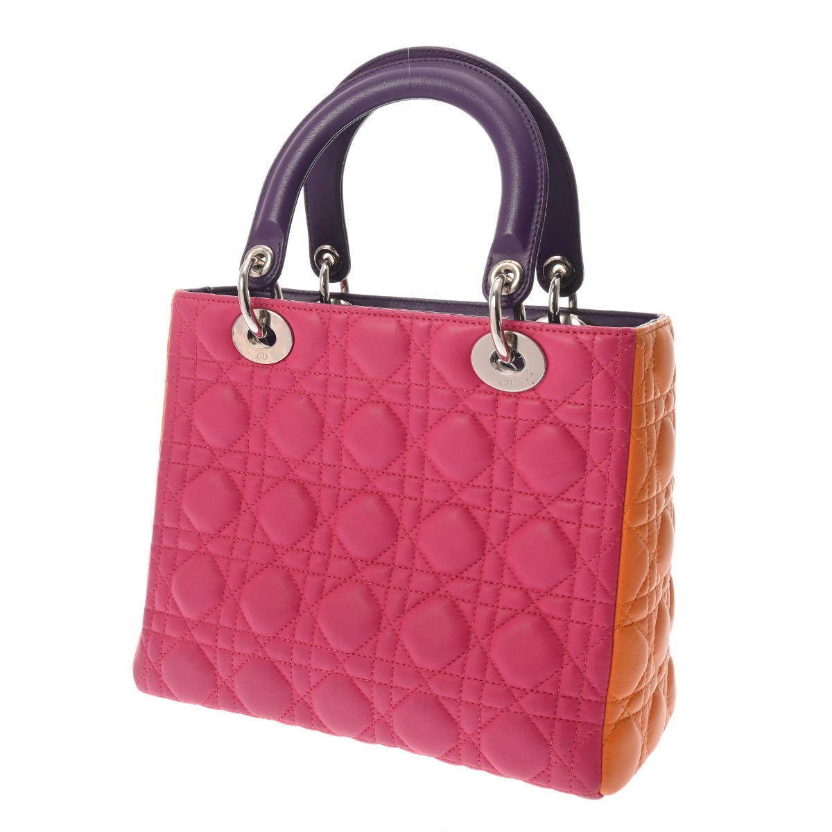 ディオール LADY DIOR バッグ スモール カナージュ ピンク/オレンジ/パープル ラムスキン レディース バッグ 【中古】【bag】