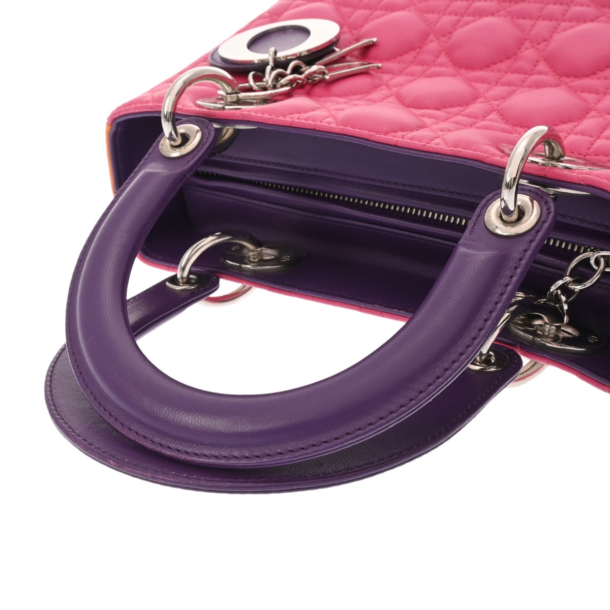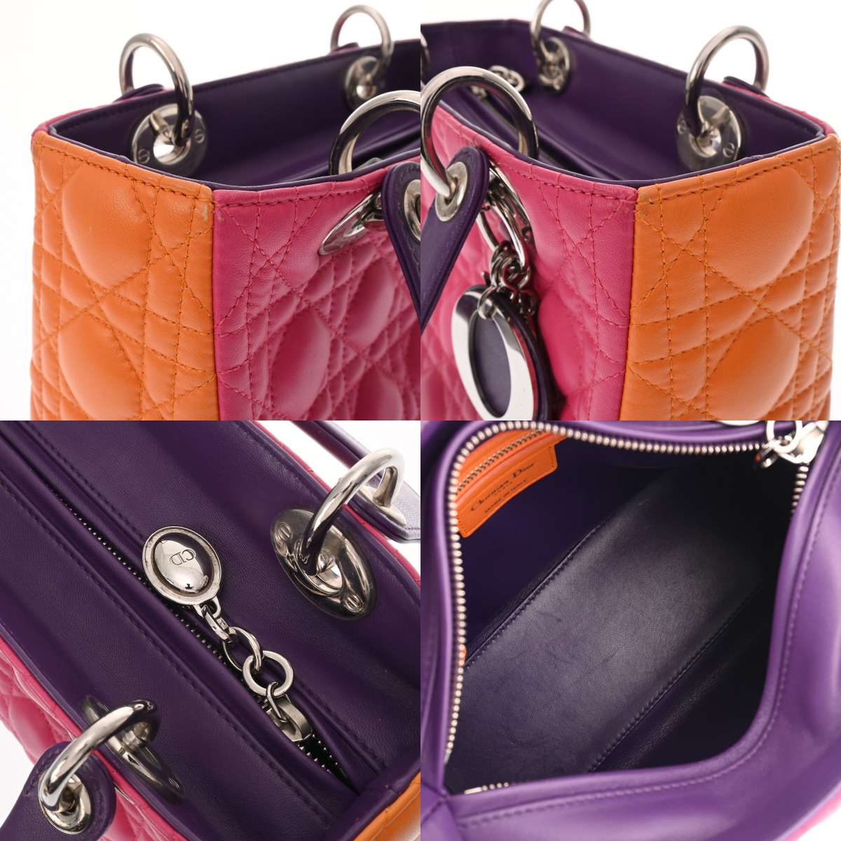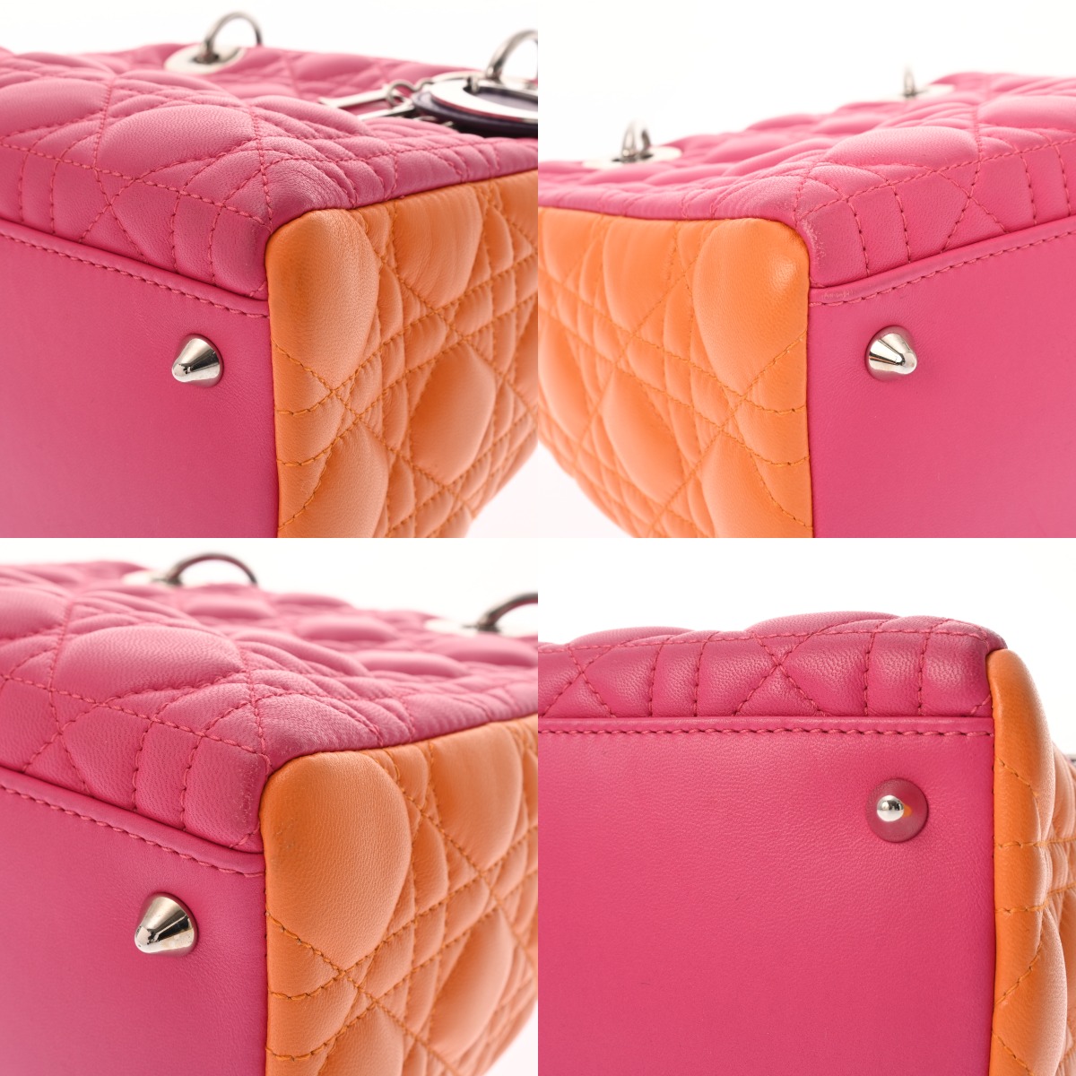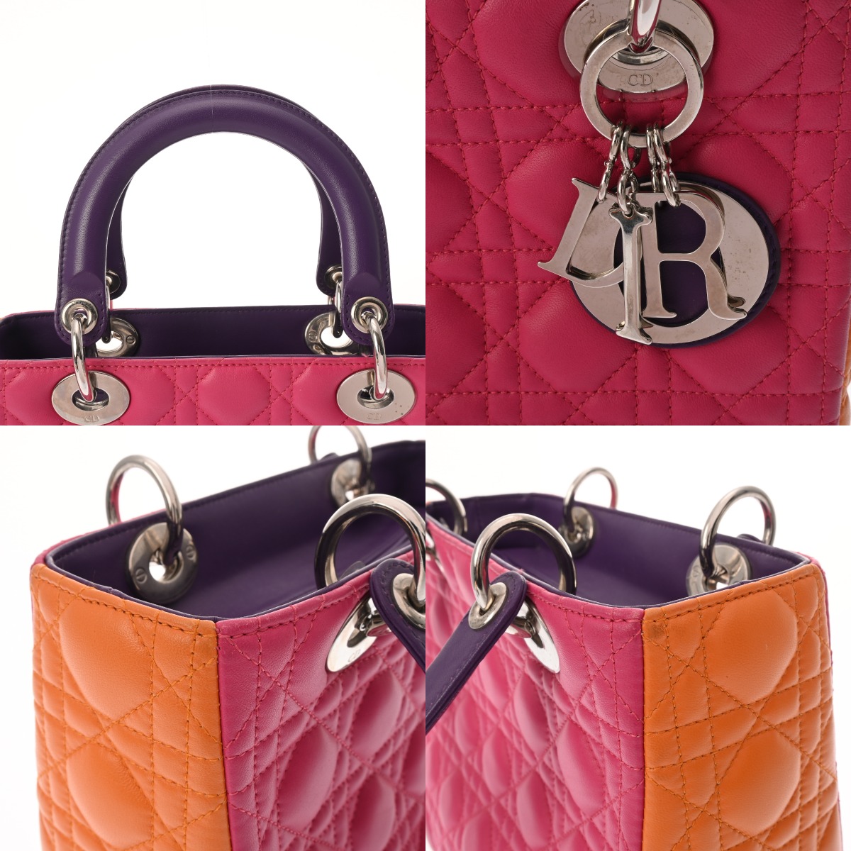 ディオール LADY DIOR バッグ スモール カナージュ ピンク/オレンジ/パープル ラムスキン レディース バッグ 【中古】【bag】
