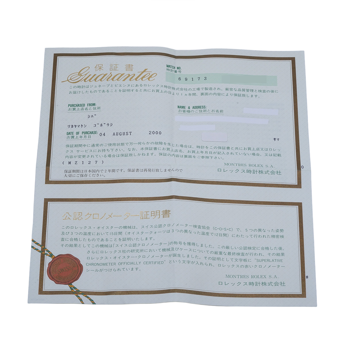 - 時計の当社保証