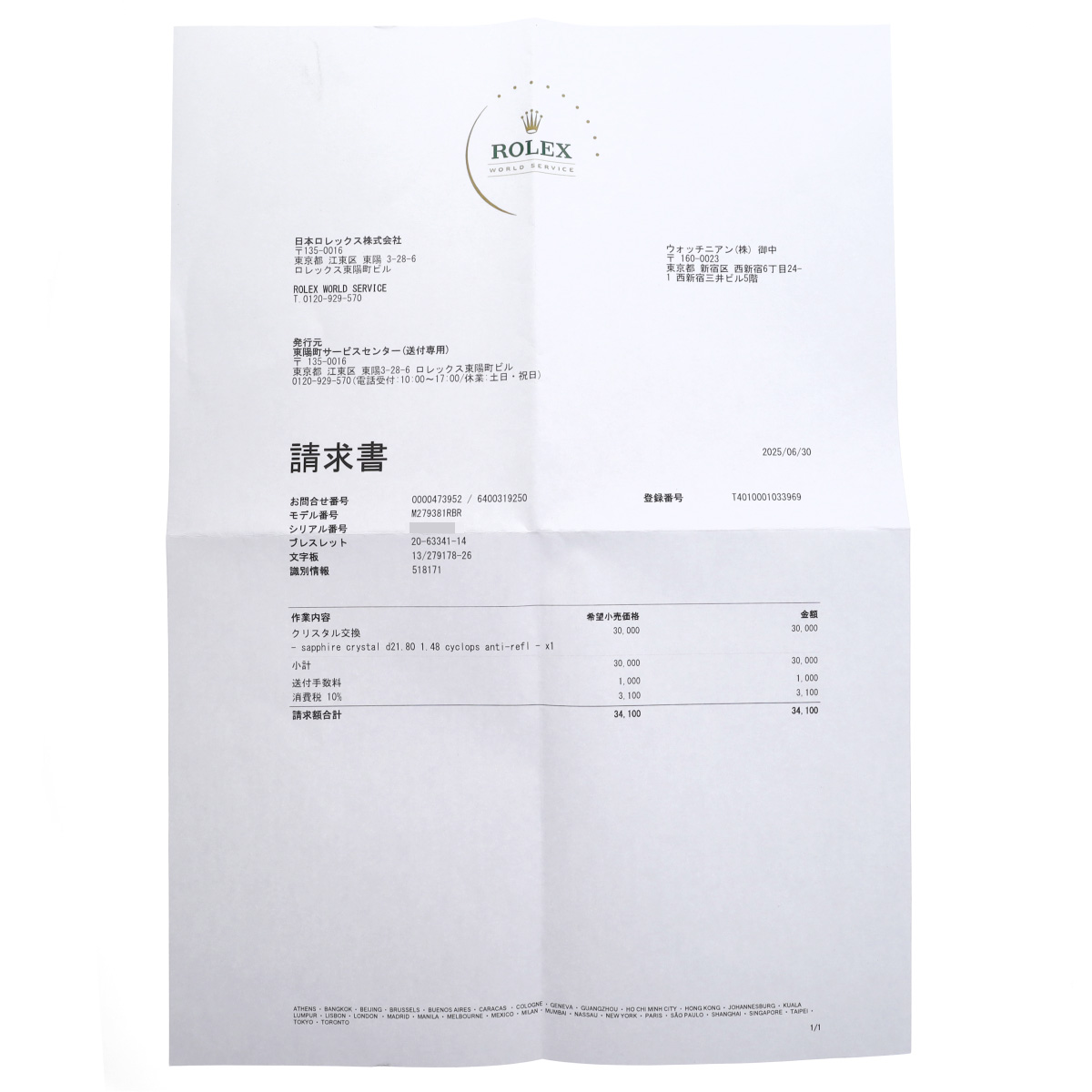- 請求書(2025年6月クリスタル交換)