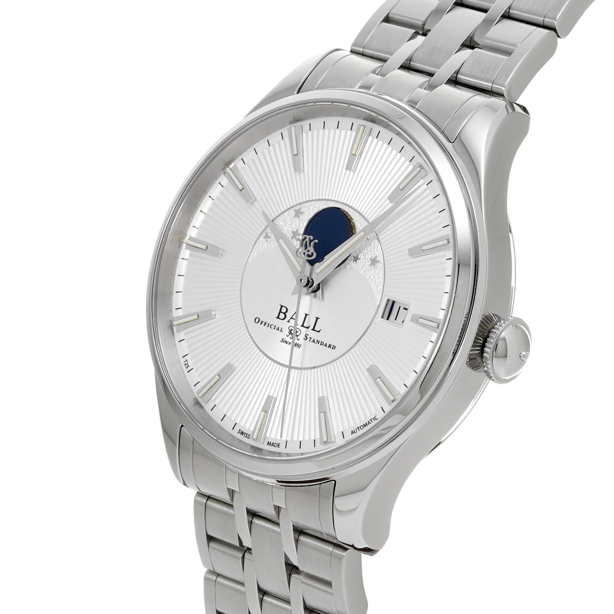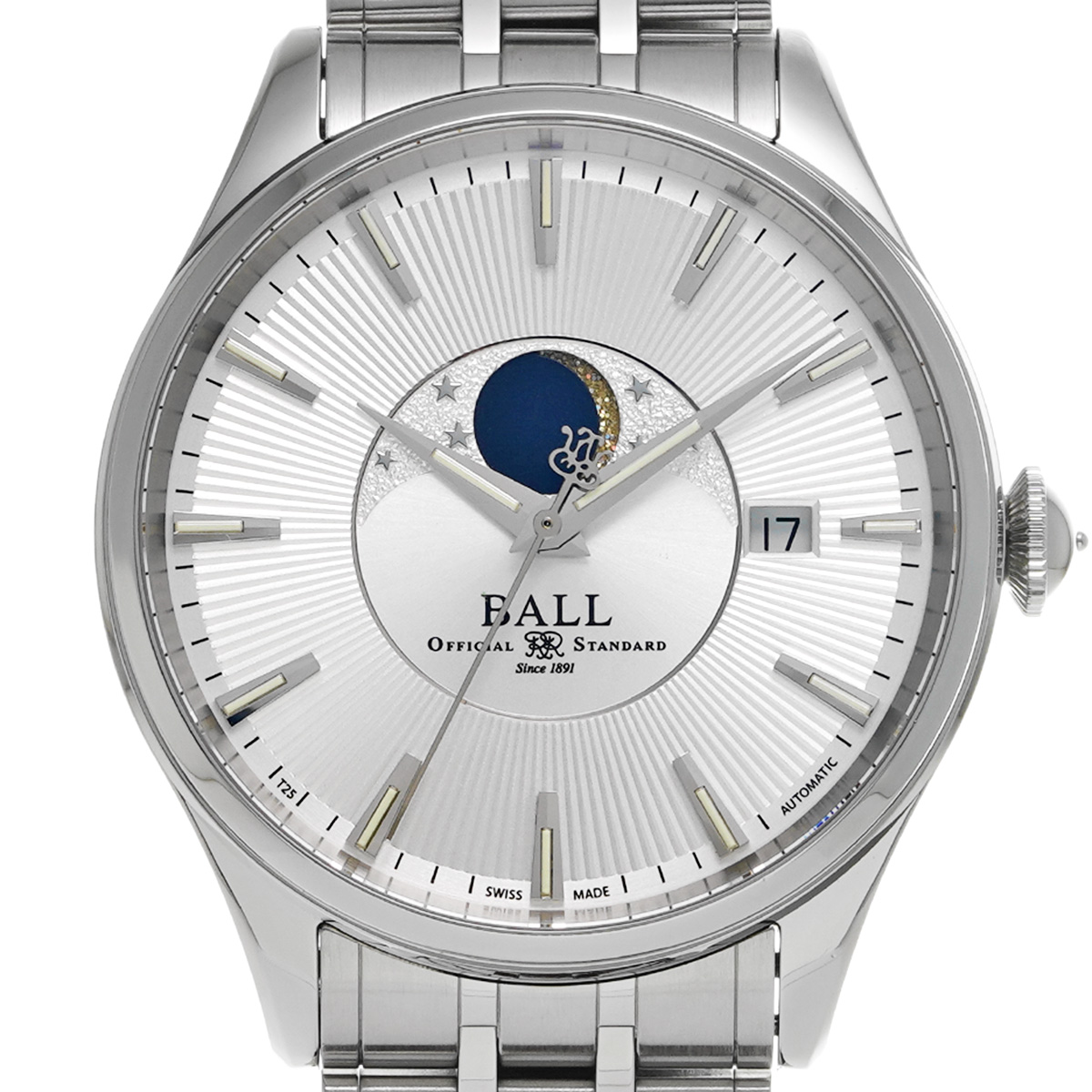 ボールウォッチ トレインマスター ムーンフェイズ NM3082D-SJ-SL シルバー メンズ 時計 【中古】【wristwatch】