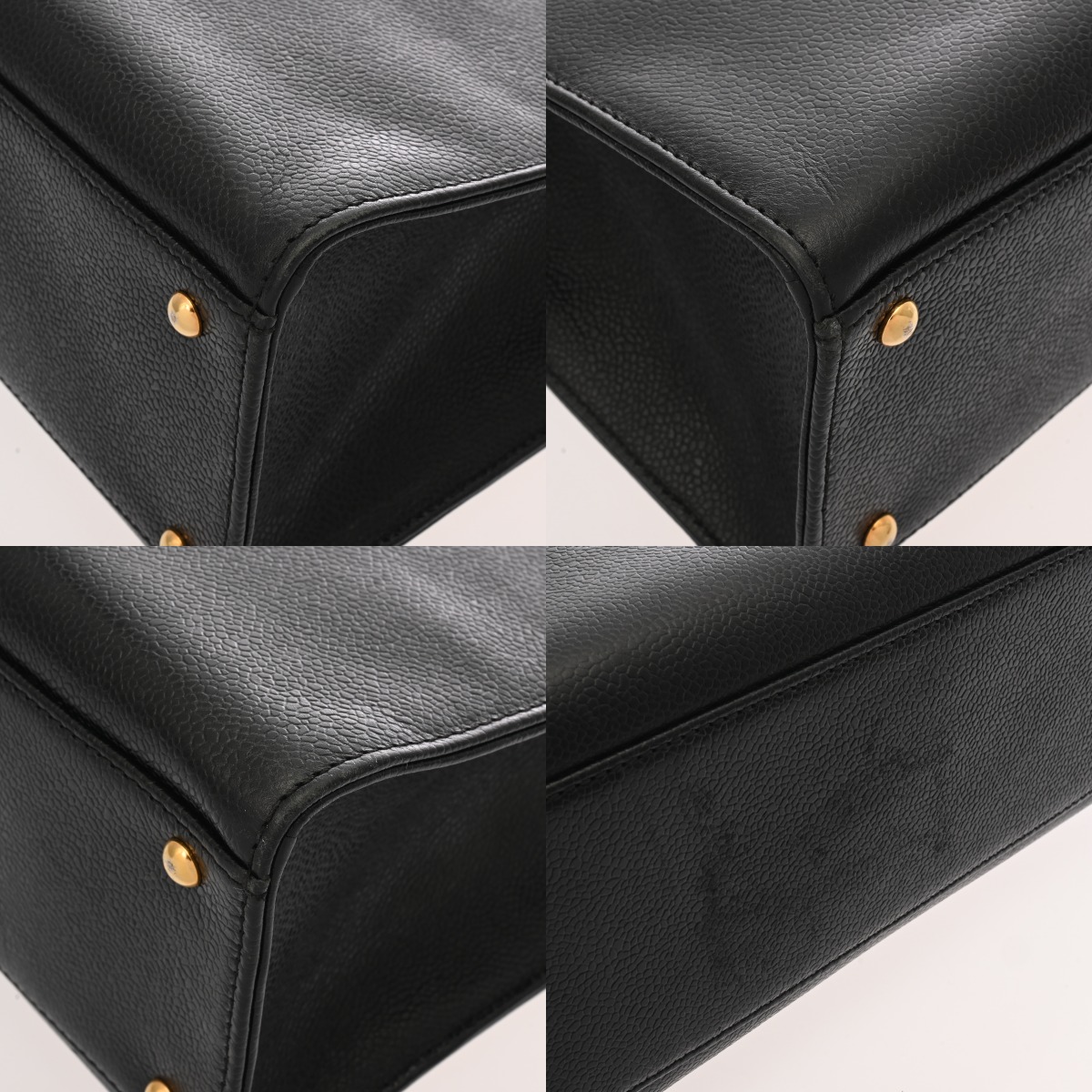- つぶれ、スレやキズ、バッグ口にヨレ、底鋲含め金具部分にスレキズや色ハゲがございます。