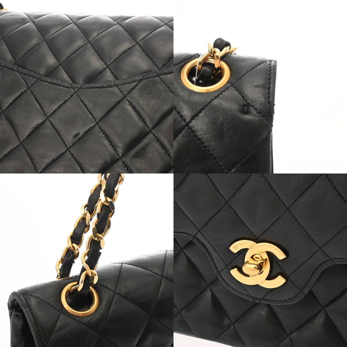 シャネル マトラッセ WフラップWチェーンショルダー 25 ブラック ラムスキン レディース バッグ 【中古】【bag】