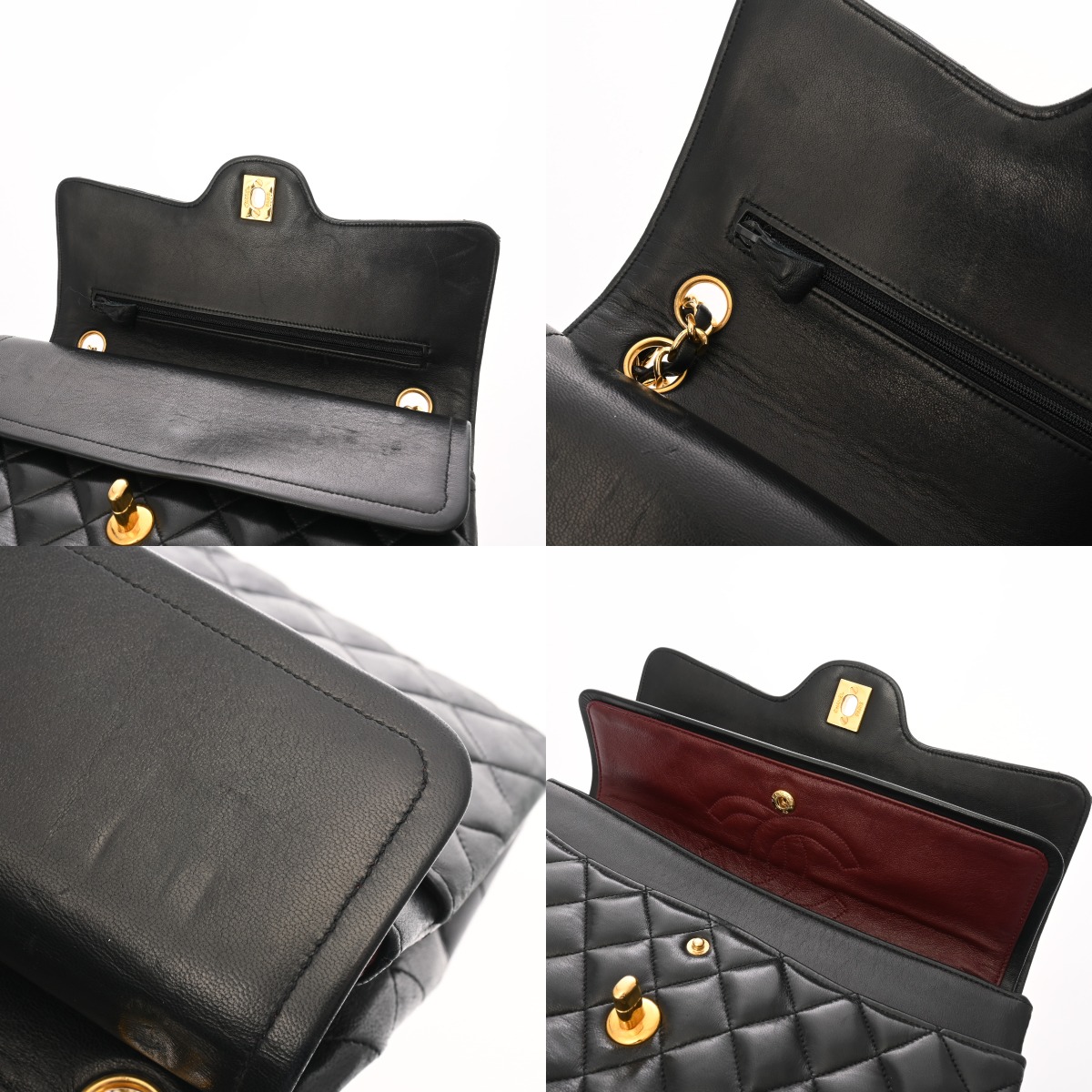 - つぶれ、ヤケ、テカリ、シワやスレ、押し跡、角スレ、薄汚れ、フラップにヨレ、金具にくすみやスレキズなど使用感がございます。