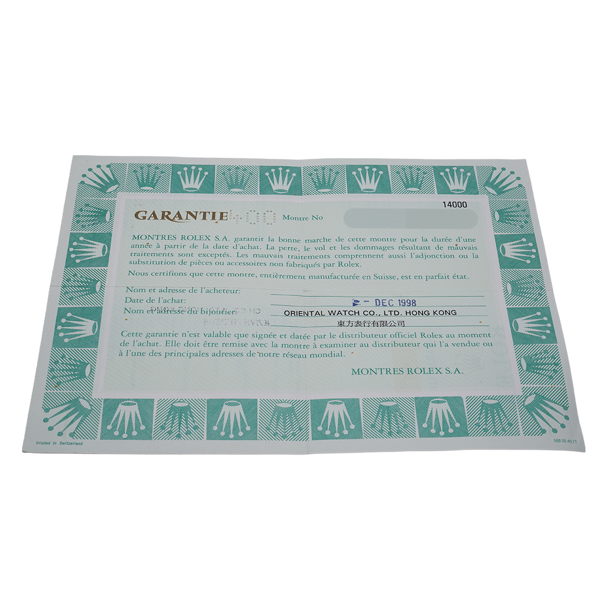 - 時計の当社保証