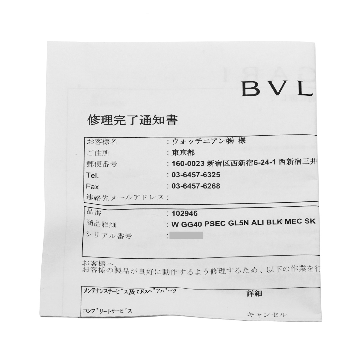 - 修理完了通知書(2025年6月ストラップ交換)