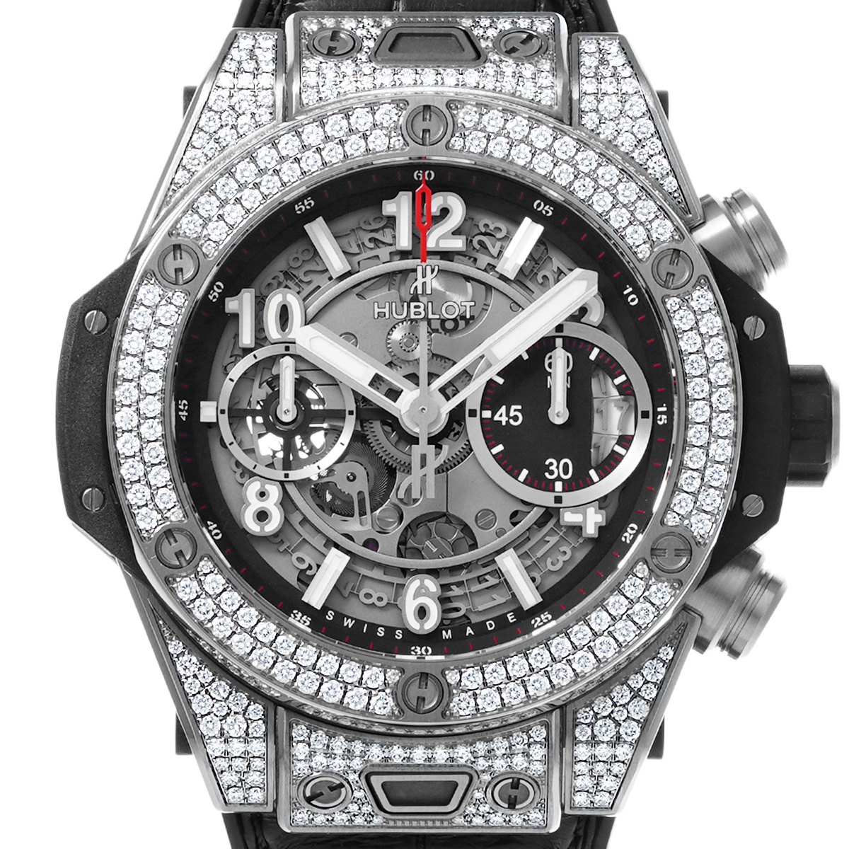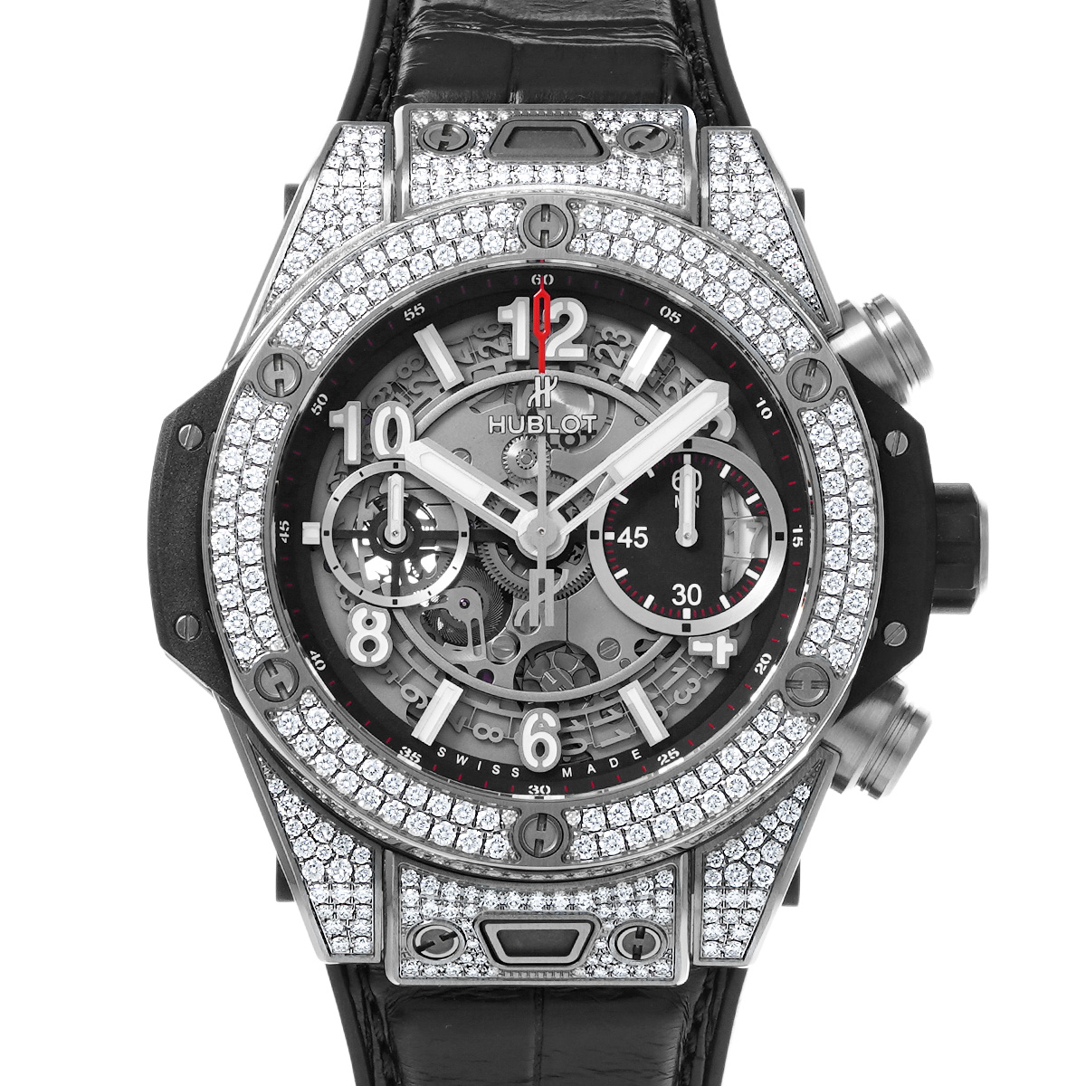 ウブロ ビッグバン ウニコ チタニウム パヴェ 441.NX.1170.RX.1704 マットブラックスケルトン メンズ 時計 【中古】【wristwatch】