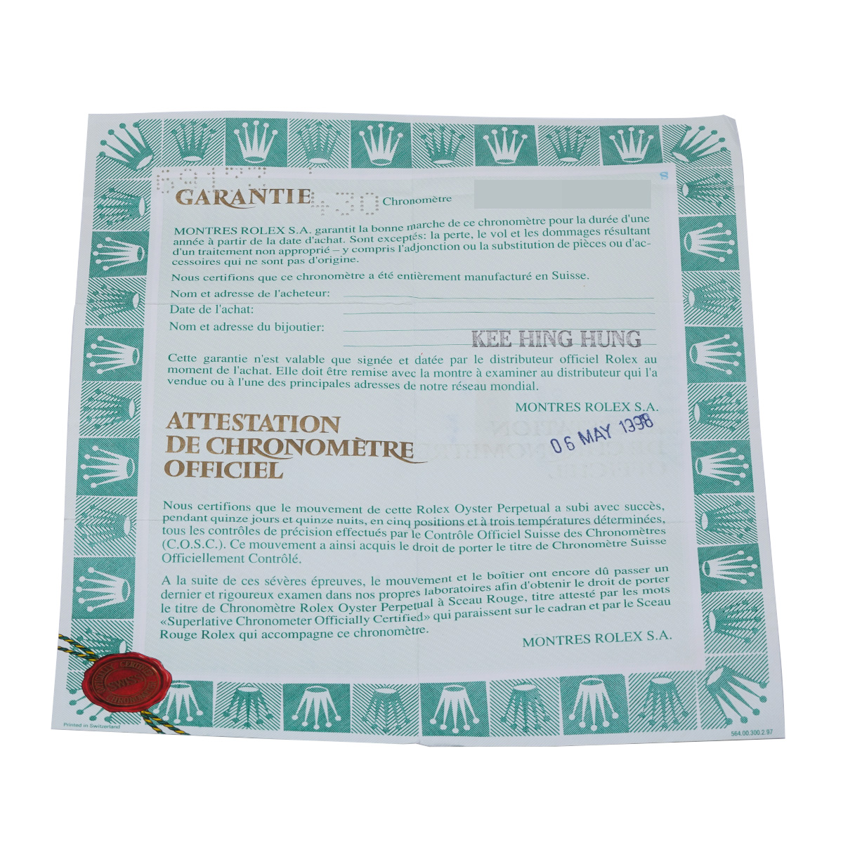 - メーカー保証書( 1998年5月海外購入) / 内箱(劣化)/タグ