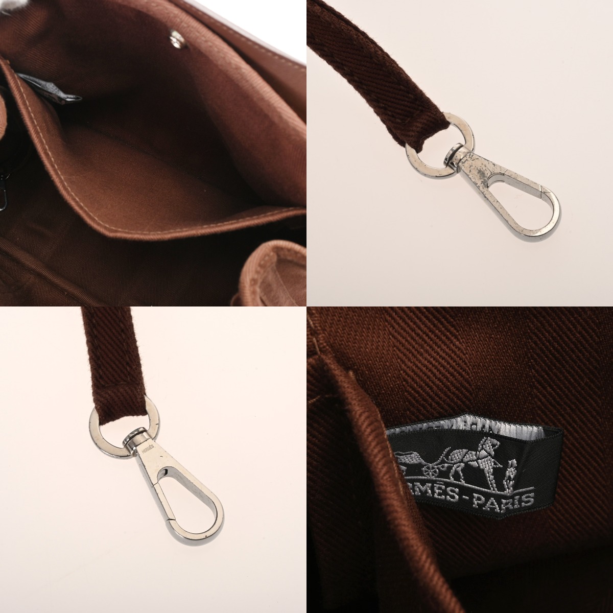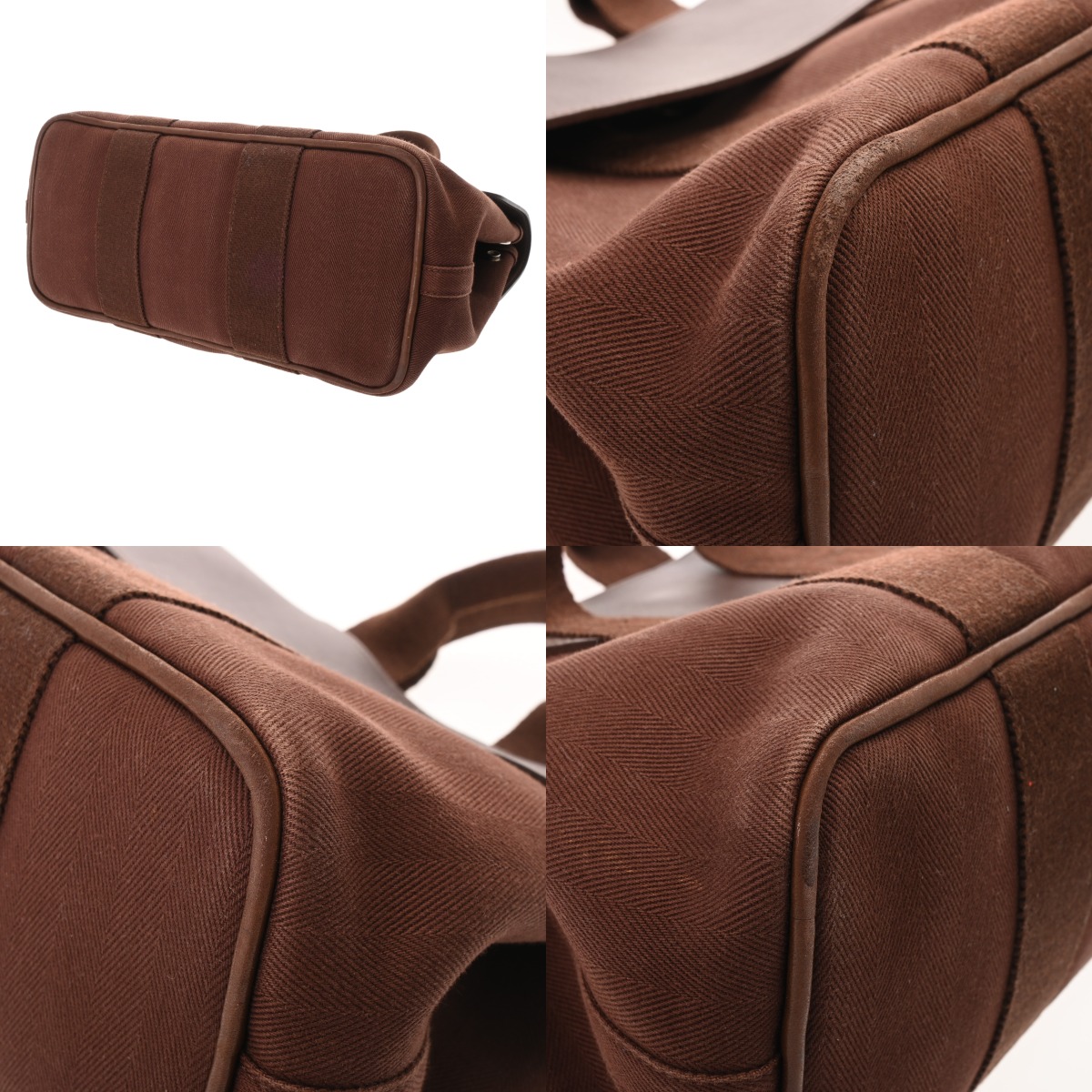 - 型崩れ、薄汚れ、色褪せ、スレ、毛羽立ち、シワ、金具にくすみやスリキズなど少々使用感がございます。