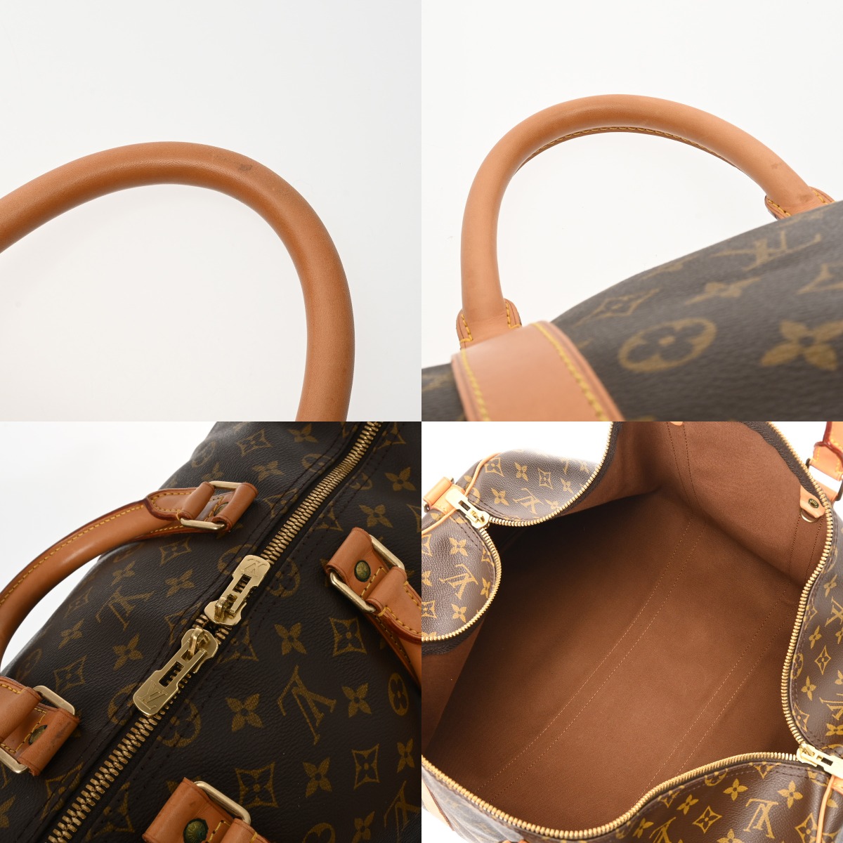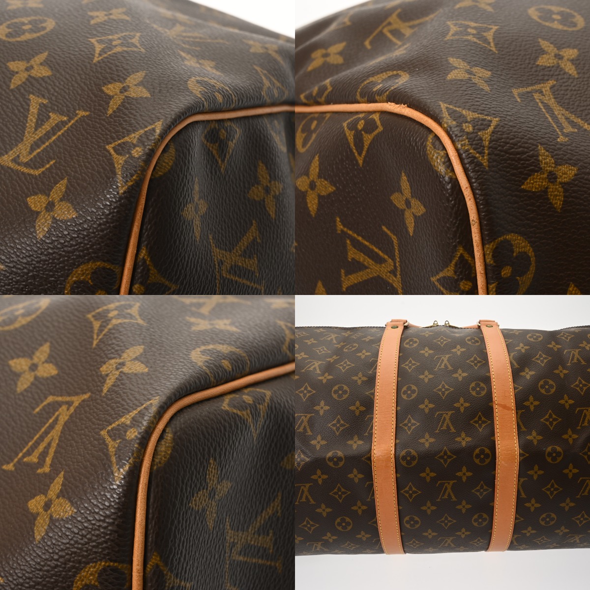 つぶれ、たたみクセ、テカリ、シワ、スレ、ヌメ革にヤケやシミ、ヒビ割れや汚れ、ショルダーにクセ、付属品含め金具に青錆の付着や変色、スリキズなど使用感がございます。