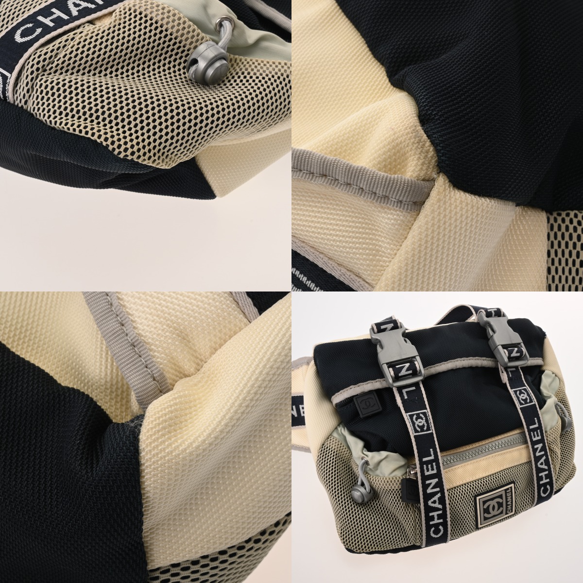 - つぶれ、型崩れ、スレ、薄汚れ、メッシュ部分にヤケ、糸の出、角にほつれ、金具に変色やスレキズなど使用感が若干ございます。